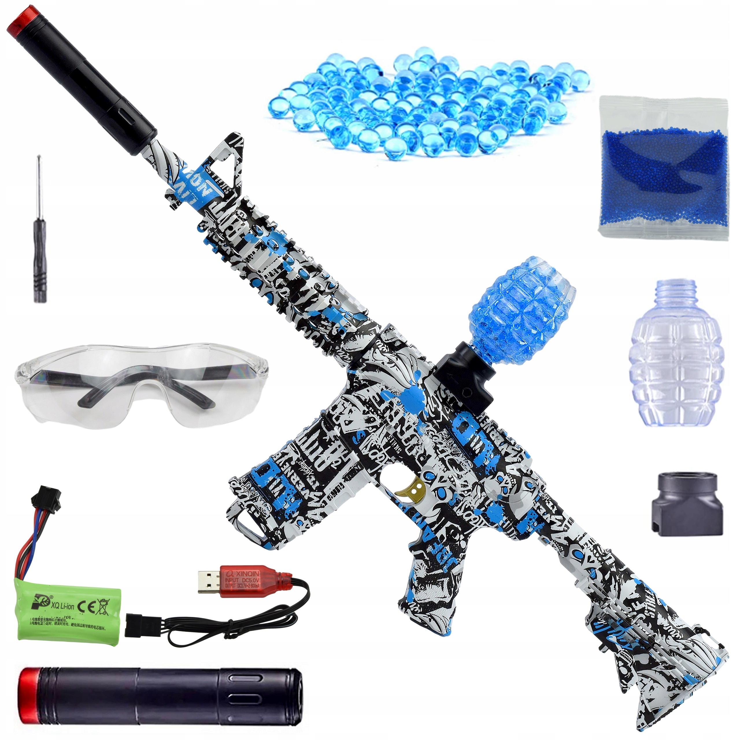 - a Богатая комплектация, включающая глушитель и магазин в форме гранаты.