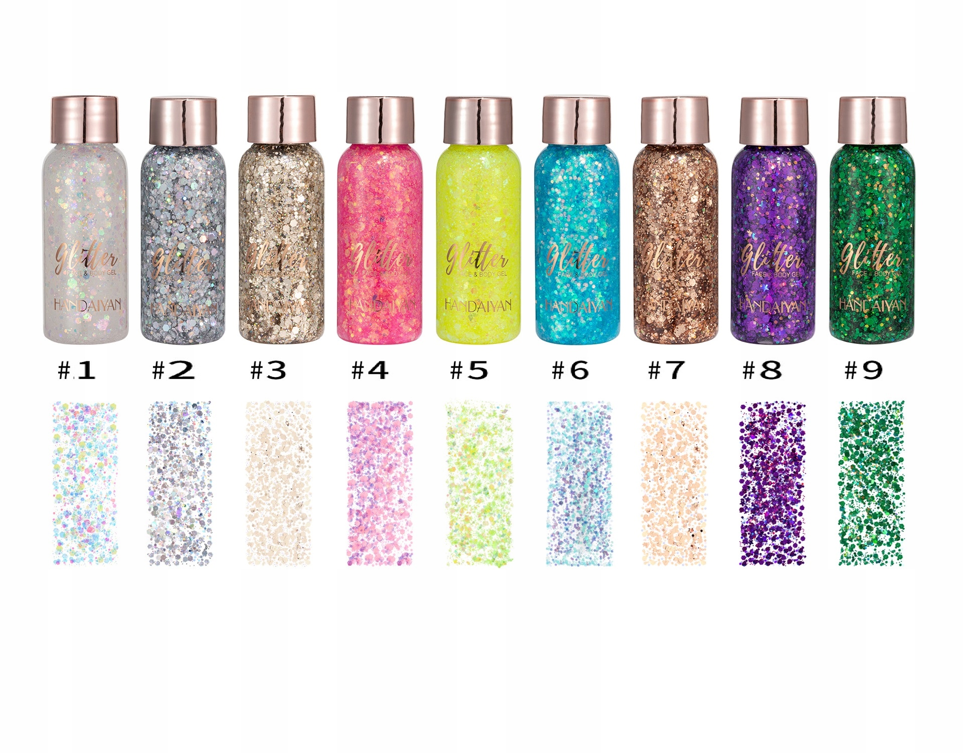 - Формула премиум -класса - изготовлена из безопасных материалов с низким раздражением, она идеально подходит для всех типов кожи, имеет хорошую адгезию и является водонепроницаемой и может эффективно адсорбировать на поверхности кожи без дополнительного клея благодаря идеальному комбинации блесток и клея. Вы можете напрямую украсить любую часть тела.
