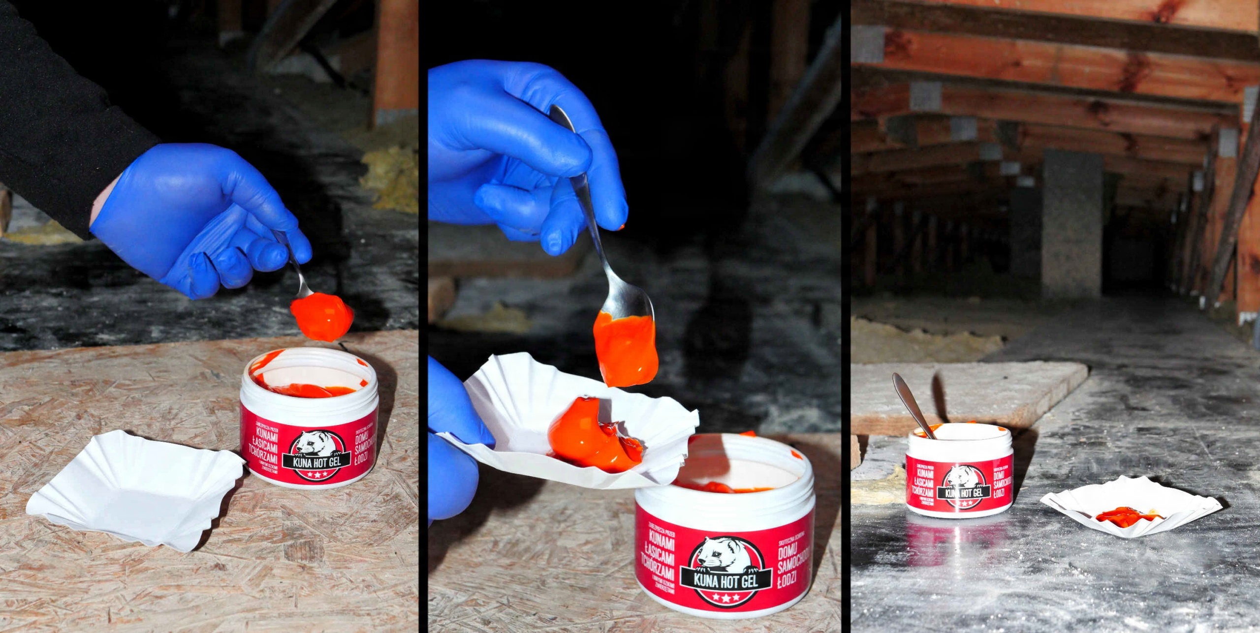 Препарат рекомендуется использовать как альтернативу ультразвуковым отпугивателям или как усилитель их действия. KUNA HOT GEL можно использовать профилактически или после определения мест активности вредителей.