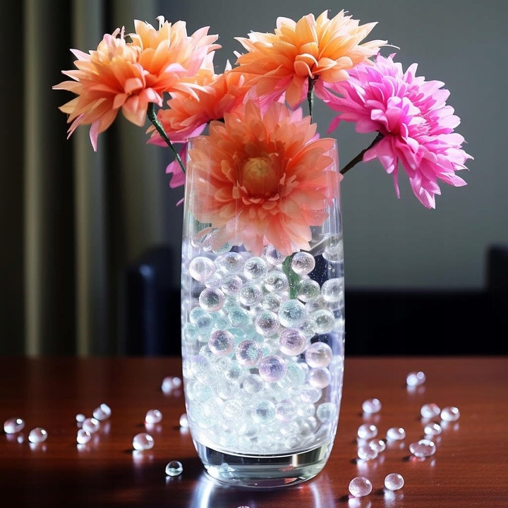 Гидрогелевые шарики — отличный декоративный инструмент, а также отличный способ поливать растения и цветы в горшках. Просто залейте их водой и подождите, пока они набухнут. Шары станут прекрасным украшением, которое прослужит до месяца!