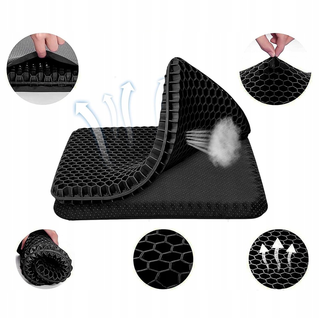 - Гелевая подушка сиденья На задней стороне двойной сотовой подушки имеется эргономичная канавка для улучшения несущей способности. Сетчатая структура увеличивает циркуляцию воздуха и обеспечивает комфорт, даже если вы долго сидите, вы не почувствуете усталости и снизится физическая нагрузка.