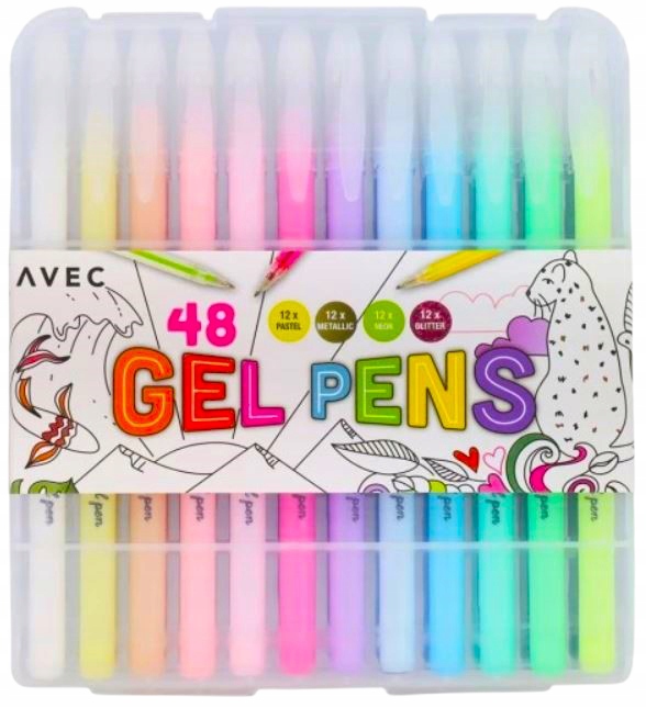 НАБОР ГЕЛЕВЫХ РУЧОК С БЛЕСКАМИ NEON PASTEL ЦВЕТНЫЙ НАБОР ИЗ 48 НАБОРОВ AVEC