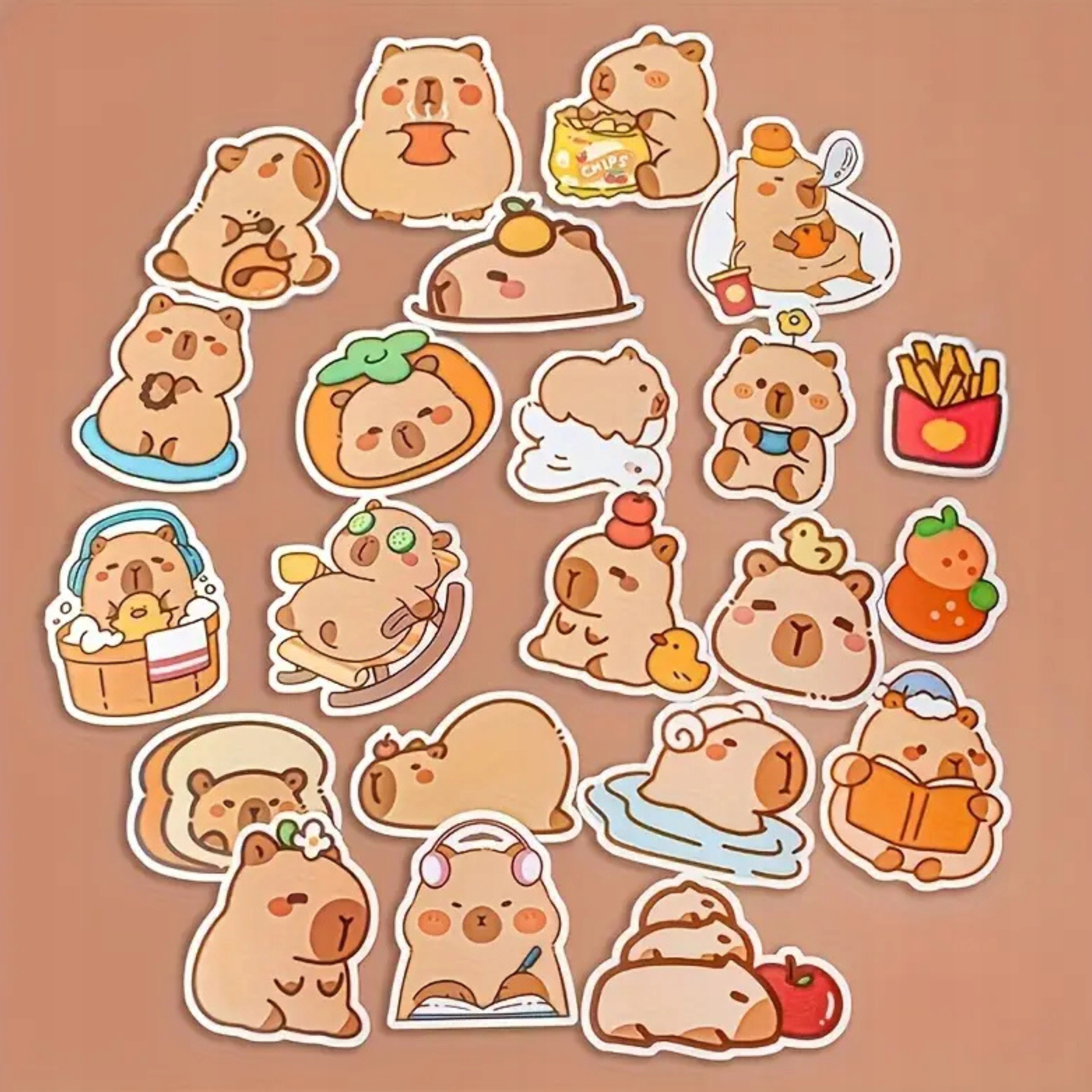 В наборе вы найдете различные дизайны: лежащие капибары, купание, купание, чашка чая и даже в солнцезащитных очках! Каждая наклейка - это доза мира, которая вызывает улыбку.