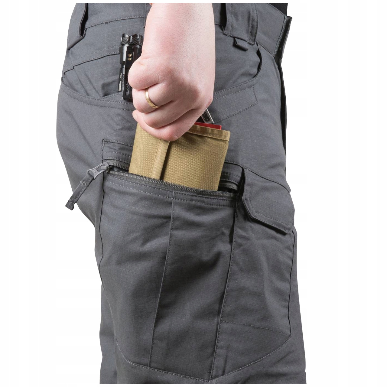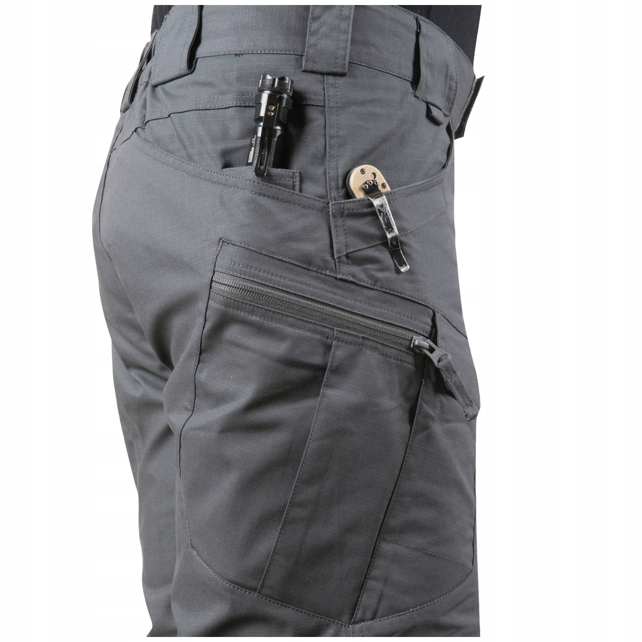 Правильно расположенные карманы позволяют разместить снаряжение близко к центру тяжести – вокруг бедра и талия. Края переднего и заднего карманов дополнительно усилены, чтобы выдержать интенсивное вставление зажимов для ножей или фонарей. Два кармана на передней части бедер, застегивающиеся на липучки, идеально подходят для ношения смартфона, но они достаточно велики, чтобы вместить даже магазин AR/AK. Боковые набедренные карманы на молнии на первый взгляд плоские, но их конструкция позволяет без проблем носить с собой достаточно крупные предметы, например кошелек или небольшую сумку.