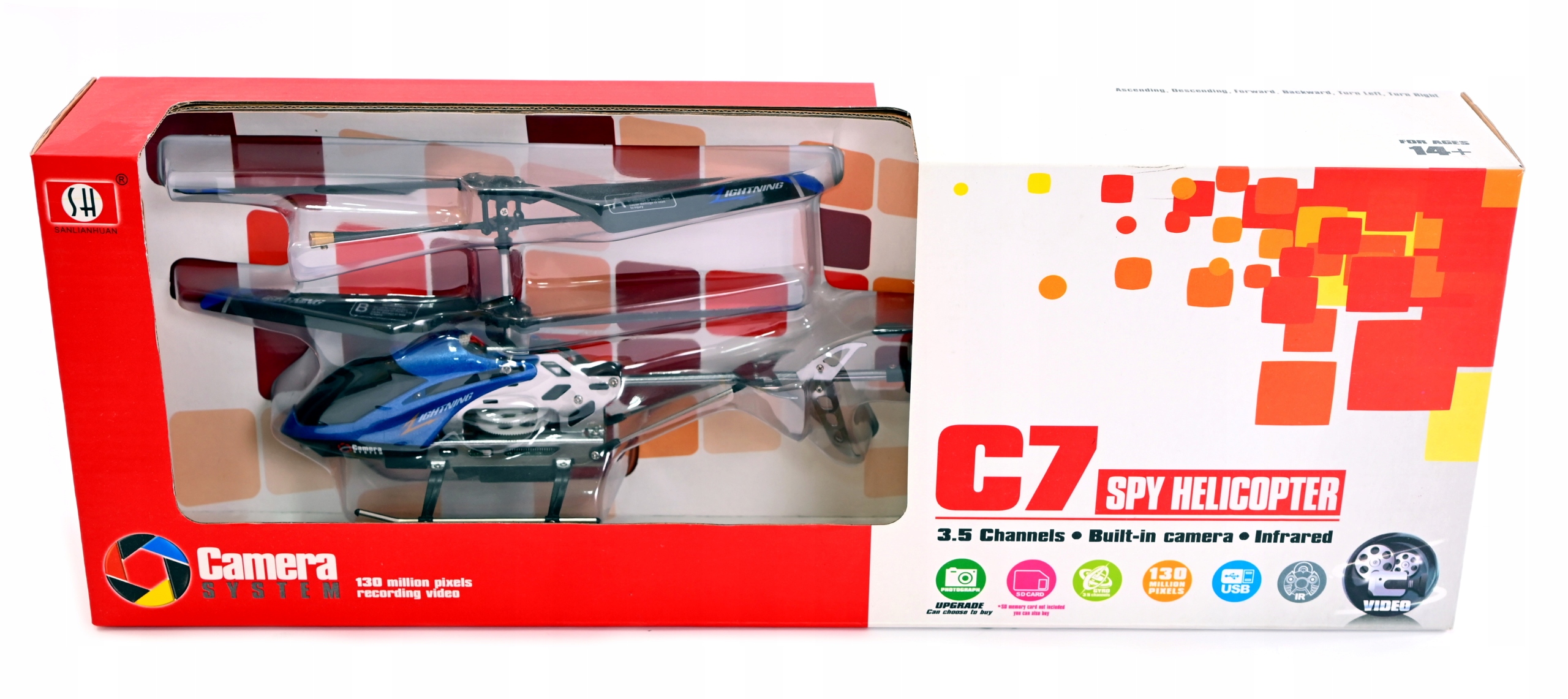 Вертолет прост в управлении благодаря удобному дистанционному пилотированию и точному управлению. Размещенная на борту камера позволяет записывать видео.