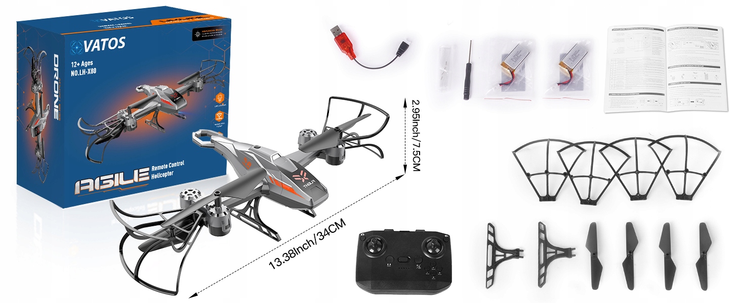 - ✈️ Оснащен запасным квадрокоптером и защитным чехлом. Инновационная конструкция с четырьмя крыльями обеспечивает более тихий полет.