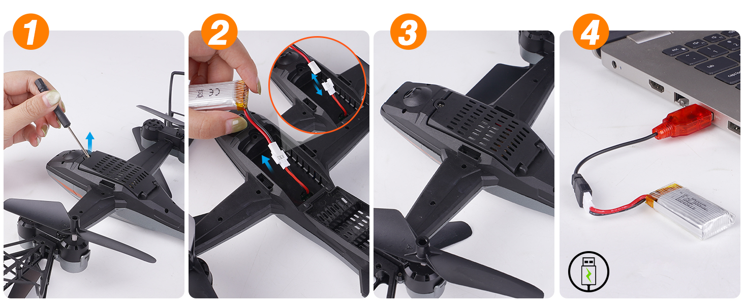 ЛЕГКАЯ ЗАРЯДКА И ИЗВЛЕЧЕНИЕ АККУМУЛЯТОРА. Радиоуправляемый самолет оснащен более простой встроенной батареей с USB-портом, поэтому вы можете заряжать ее в любое время через зарядный порт вашего компьютера или различные зарядные головки.< /ли>