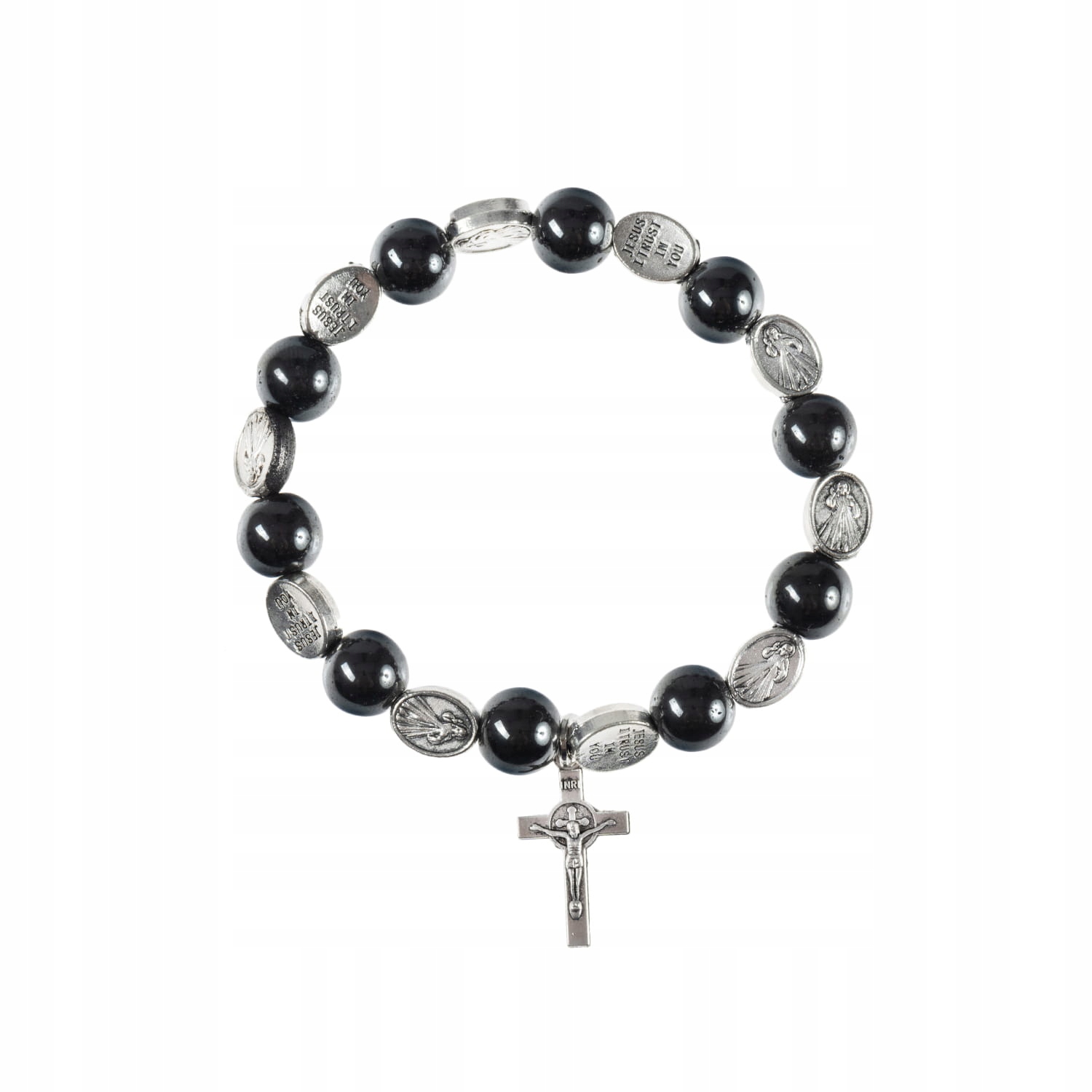 Гематитовий одинарний десятирічний браслет - Jesus Mił