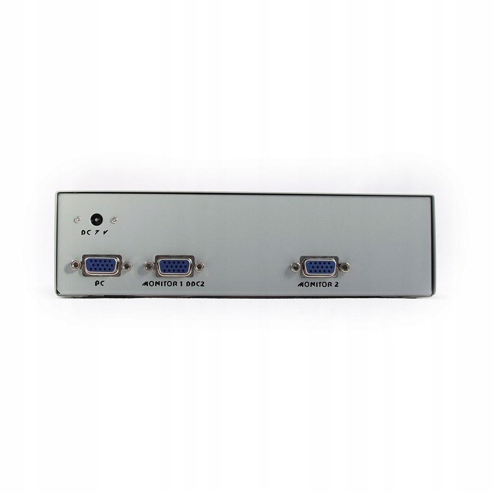 - белый Number of monitors connected: 2- sockets for connecting the monitors: DB-15F x 2- PC sockets: DB-15F x 1- housing material: metal- plug-and-playing connecting requires software hardware requirements: - PC class with SVGA graphics card, SVGA Multisync - monitor with HD -15M plugin - Hułłów cables: Men's VGA cable