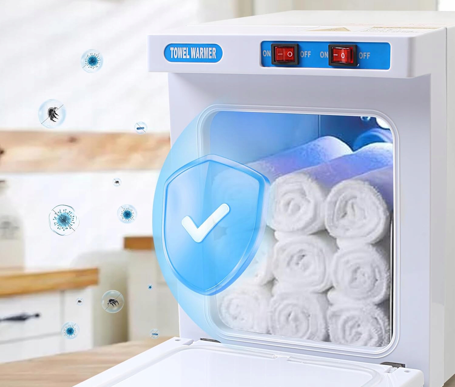 Наша полотенцесушитель — простое в использовании устройство. Просто подключите его к сети, положите полотенца, закройте дверцу и нажмите кнопку питания. Имеет два независимых переключателя стерилизации и нагрева, что повышает комфорт использования. Кроме того, прилагаемый зажим для полотенца предотвращает ожоги. Универсальное применение этой сушилки делает ее идеальной для дома, гостиницы, сауны, салона красоты и многих других мест, что делает ее бесценным элементом гигиенического ухода.