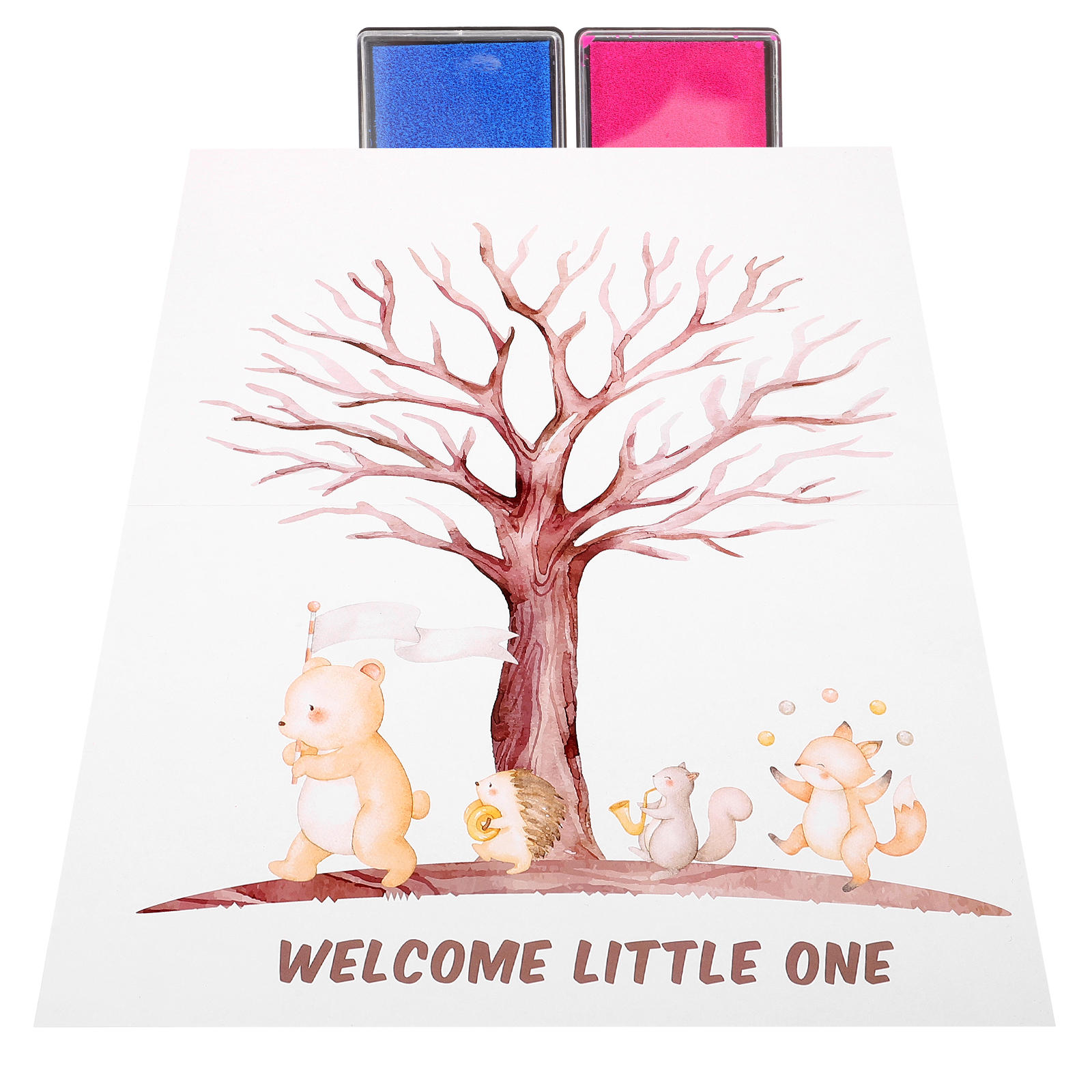 ✅1 x Плакат с отпечатками пальцев Дерево 2 прокладки (синий/розовый) 1 X Самоадгезивный точечный лист