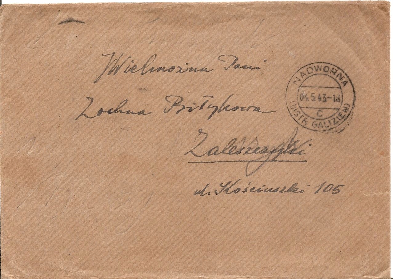 GENERALNE GUBERNATORSTWO -NADWORNA -koperta -obieg 1943 rok ZALESZCZYKI