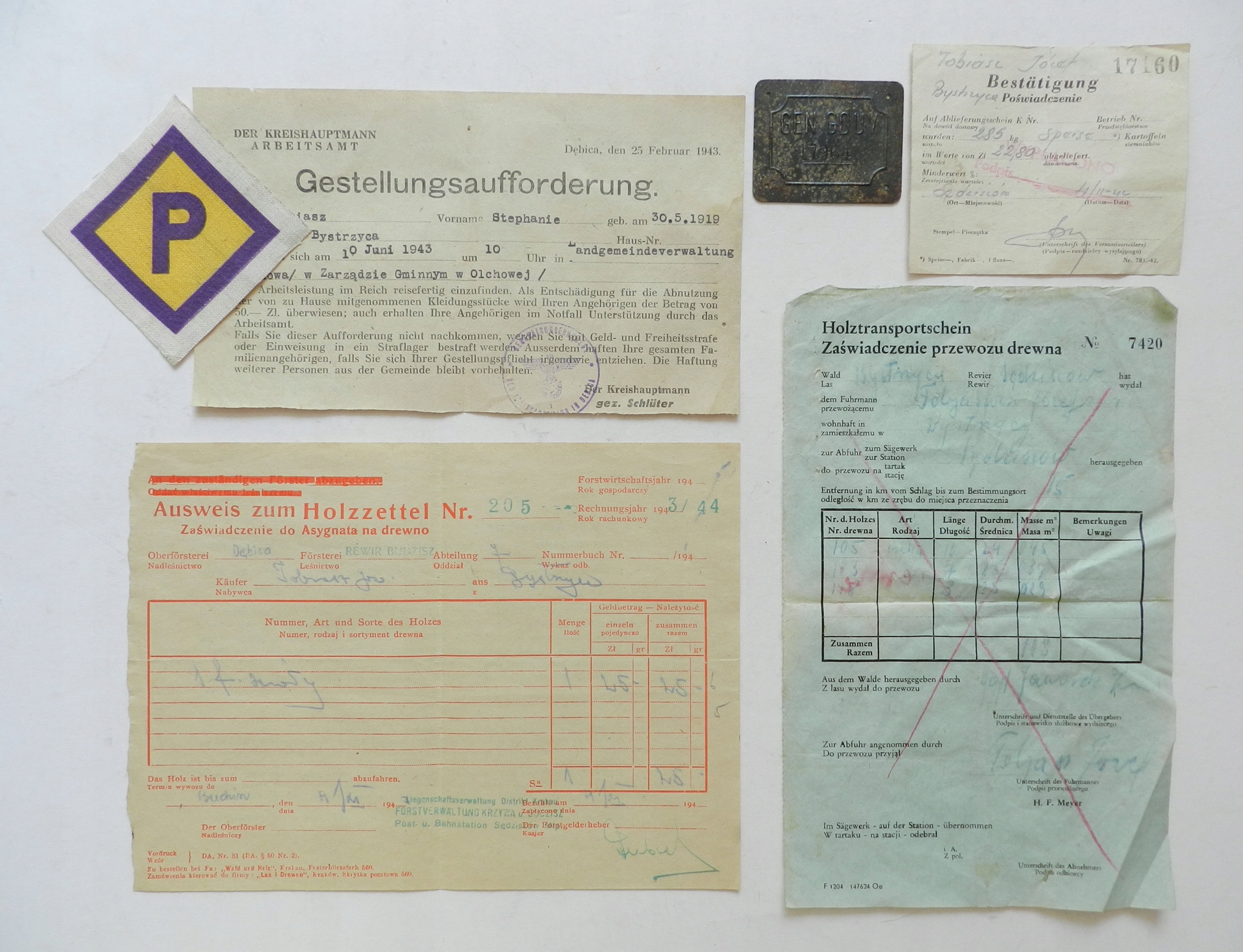 GENERALNE GUBERNATORSTWO AUSWEIS - DOKUMENT GG 2 szt. - LEŚNICZY LASY 1943