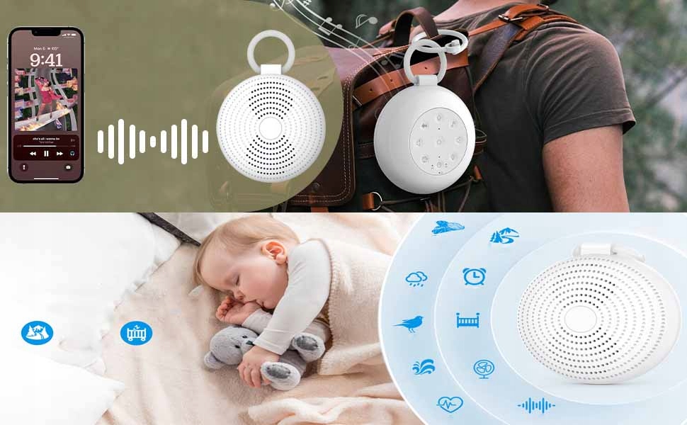 👶【Звук Bluetooth】Это не только устройство с белым шумом, но и звук Bluetooth. Когда ваш телефон выполняет поиск успешного сопряжения Bluetooth, вы можете воспроизводить музыку со своего мобильного телефона. Универсальность для удовлетворения ваших музыкальных потребностей.