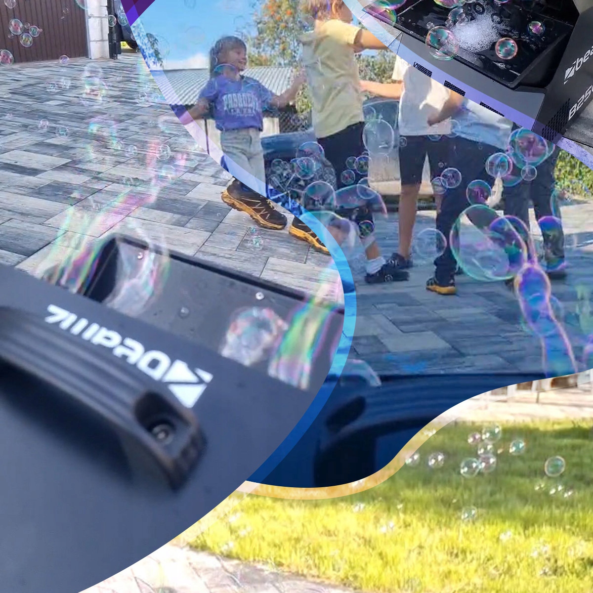 с высокой эффективностью и широкой степенью покрытия. Он имеет два вращающихся колеса, обеспечивающих двойной эффект производства пузырьков, и в то же время целых четыре двигателя для выдувания, вызывающие дополнительный нагнетание пузырьков, что делает эффект поистине впечатляющим! Генератор производит чрезвычайно большое количество разноцветных мыльных пузырей — для получения эффекта необходимо использовать соответствующую жидкость.
