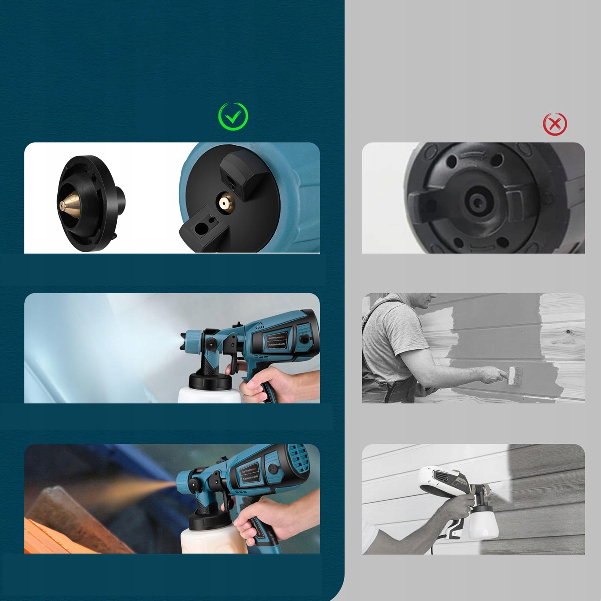Электрический краскопульт прост в эксплуатации: просто загрузите краску в контейнер, отрегулируйте угол сопла и вставьте его.