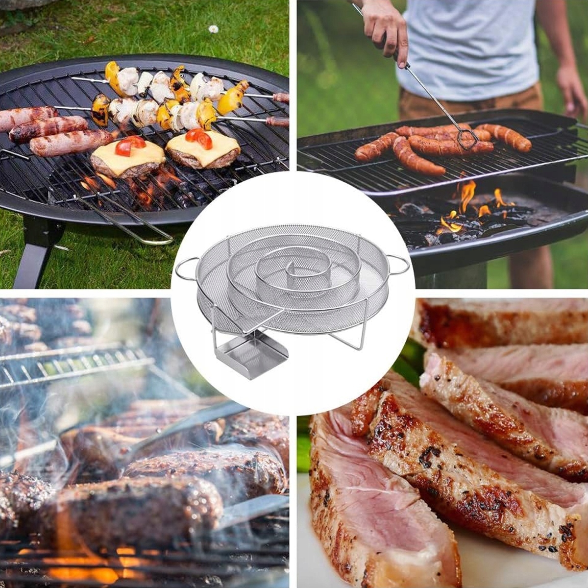 Круглая дымовая спираль из прочной, высококачественной нержавеющей стали 304 идеально подходит для более короткого приготовления (7-10 часов холодного курения). Прикрепленная чистящая щетка облегчает очистку дымчики из нержавеющей стали. Просто встряхните пепел после сжигания и удалите последние остатки чистящей кистью. Набор также включает в себя 6 с -обработанных крючков для висящего мяса во время курения.