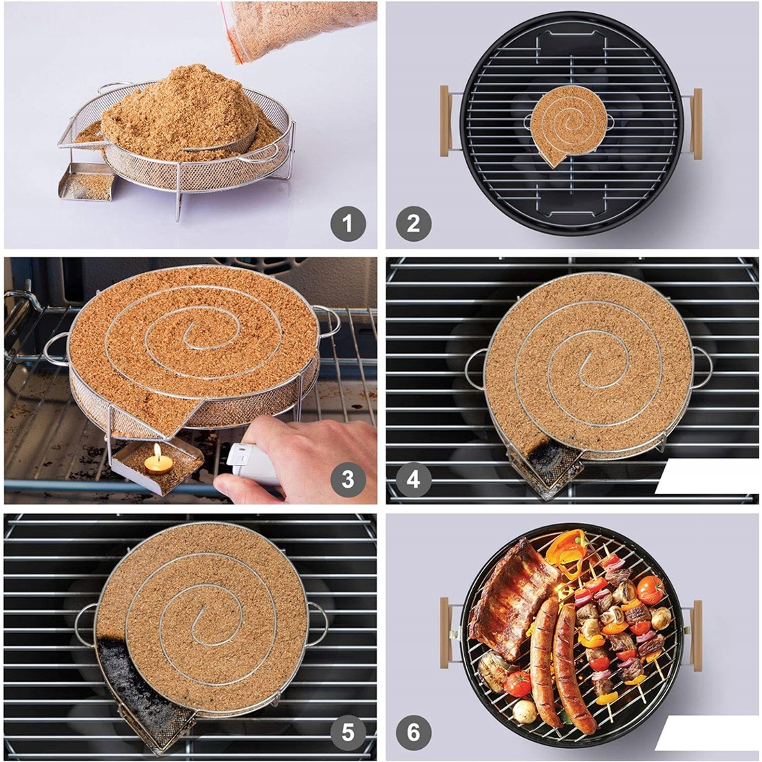 ➡Круговая спираль для копчения изготовлена из прочной высококачественной нержавеющей стали 304 и идеально подходит для более короткого времени приготовления (7-10 часов холодного копчения). Входящая в комплект чистящая щетка облегчает очистку коптильного шнека из нержавеющей стали. После обжига просто стряхните пепел и с помощью чистящей щетки удалите последние остатки. В комплект также входят 6 S-образных крючков для подвешивания мяса во время копчения.