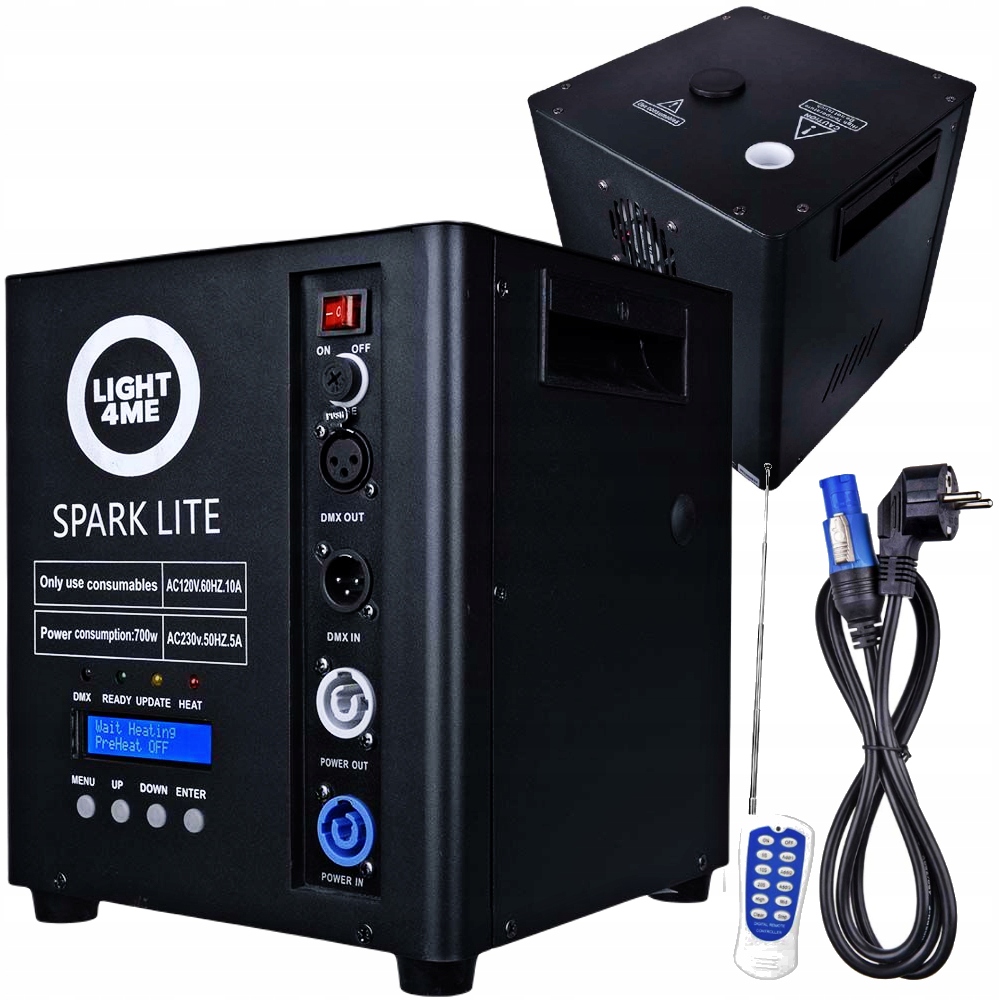 Spark Lite до Easy Emporame и Высокое качество и Безопасность использования гарантированно ✅ light4me . На задней стороне корпуса находится панель управления Устройство, DMX Sockets и Socket Power Cocket , включая ток -выход тип "Ввод" включить для передачи напряжения непосредственно с устройства . Коннекторы dmx позволяют подключать несколько искры друг с другом , управление каждому устройству отдельно или получение ✅ синхронного пиротехнического эффекта нескольких машин , очень желательно на большой стадии . Панель управления состоит из из читаемого дисплея , четыре кнопки и четыре информации, информирующая об работе устройства. Это полезные решения для операторов этой машины, которые хотят иметь полный контроль над состоянием и режимом своей работы , включая интенсивность , время отторжения и высота полюса искры . Управление также может быть выполнено с использованием беспроводного дистанционного управления .