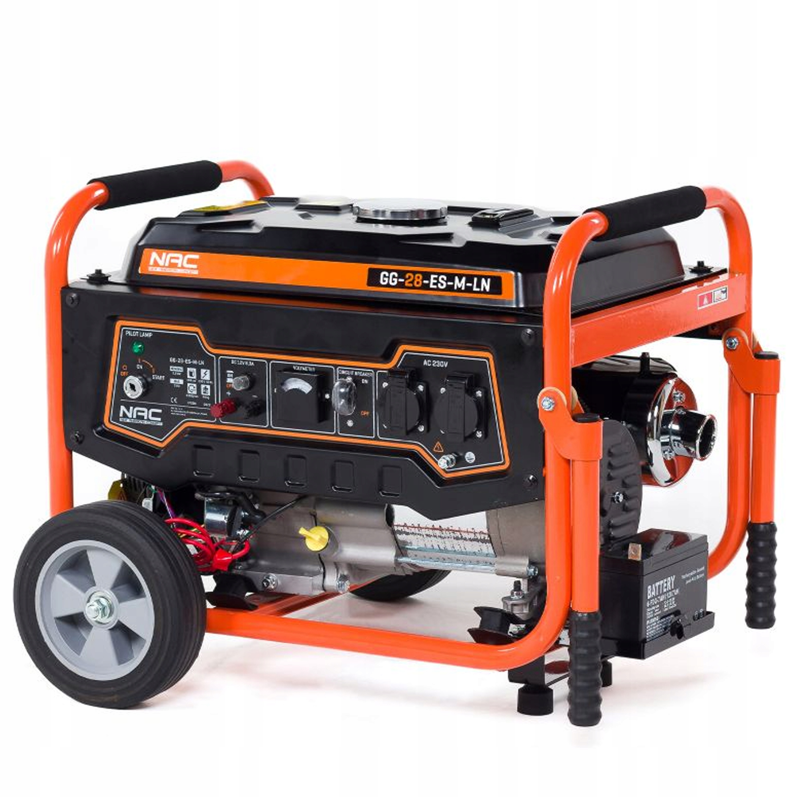 Портативный однофазный генератор тока NAC NAC GG-28-LN является устройством инвертора с электрическим запуска ; С максимальной мощностью 3000 Вт. Он предназначен для генерации переменного тока и источника питания электрических приемников с напряжением 230 В, где бы не было других источников электроэнергии, а также для аварийной работы, когда электрическая сеть сбой.
