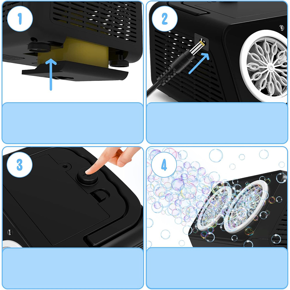 Просто нажмите одну кнопку. Затем он может производить много пузырьков в любой сцене и представляет собой магический инструмент для регулирования атмосферы. Создайте больше смеха для детей благодаря красочным пузырькам.