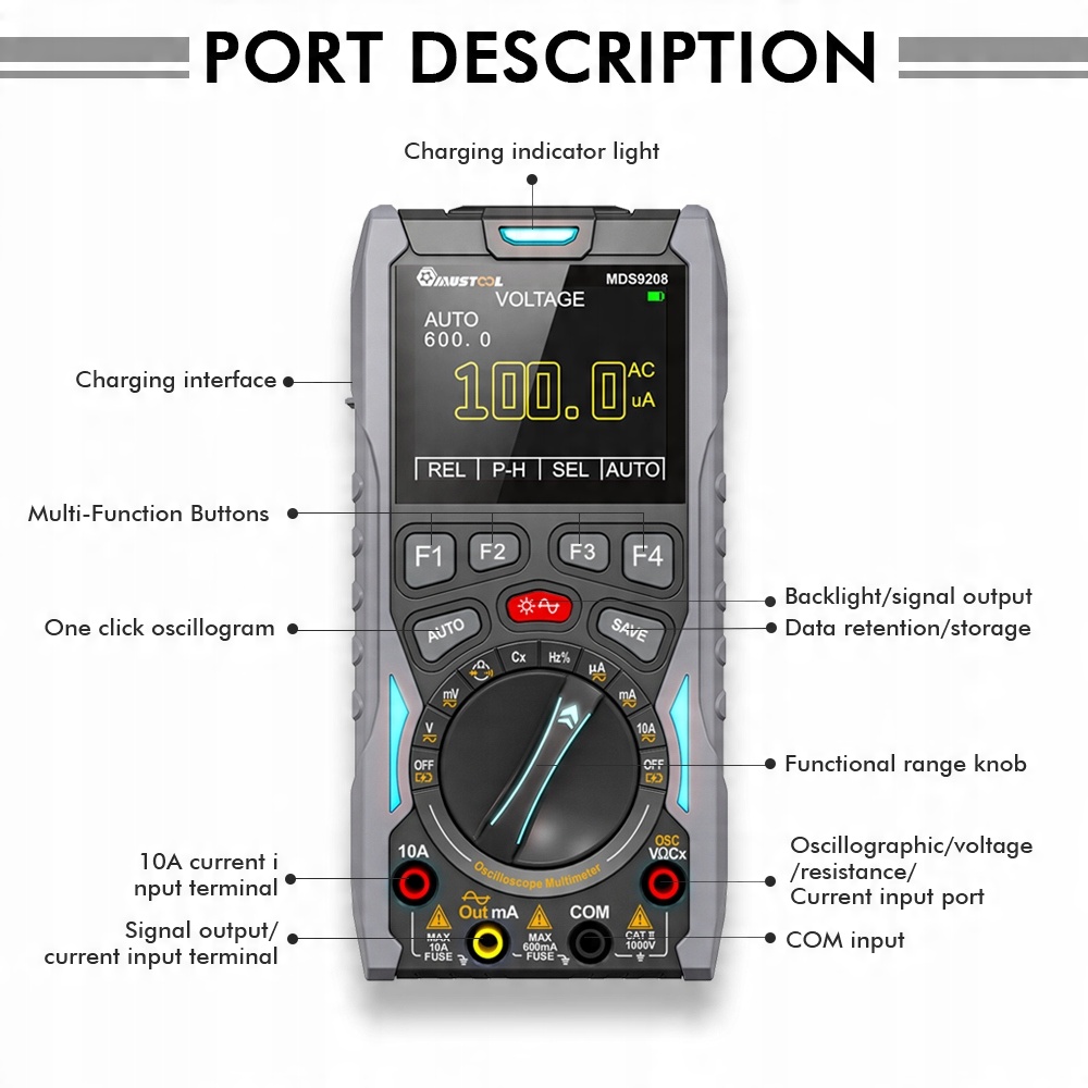 MUSTOOL® MDS9208 С ПОЛНЫМИ ФУНКЦИЯМИ МУЛЬТИМЕТРА, ОСЦИЛЛОСКОПА И ФУНКЦИОНАЛЬНОГО ГЕНЕРАТОРА