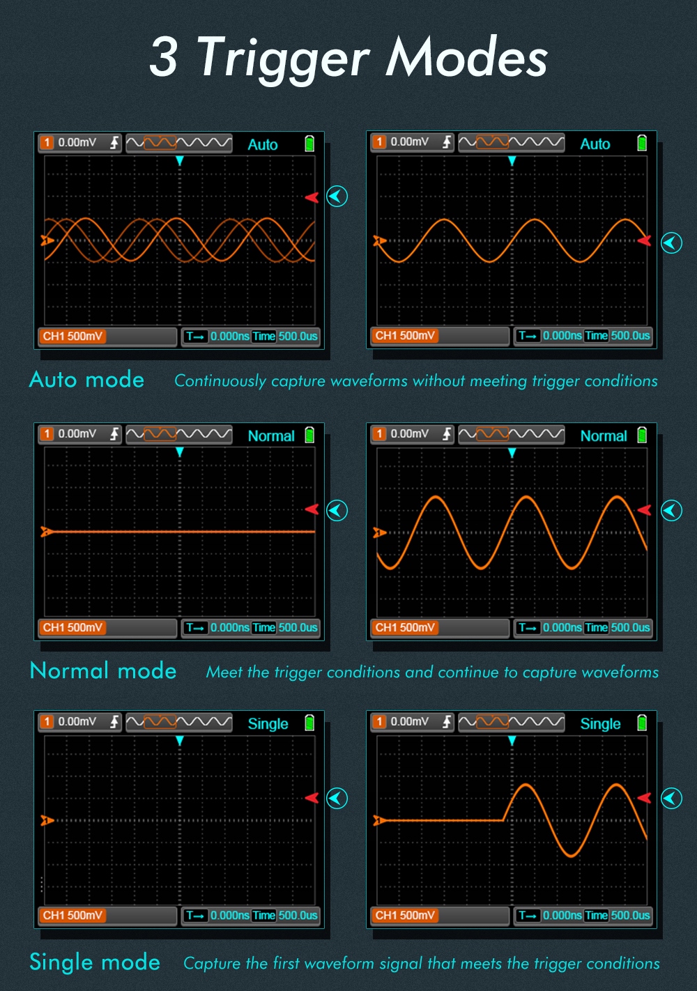 ✔ Режим триггера: автоматический, одиночный, нормальный