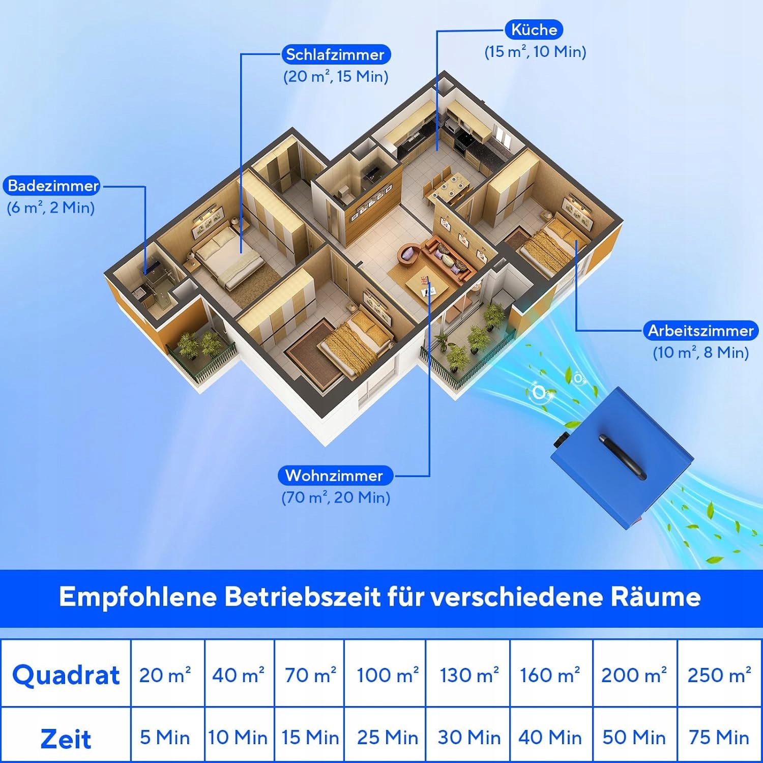 ✔︎ Усовершенствованный таймер на 120 мин и функция непрерывной работы позволяют точно регулировать время озонирования в соответствии с потребностями. интерьера.