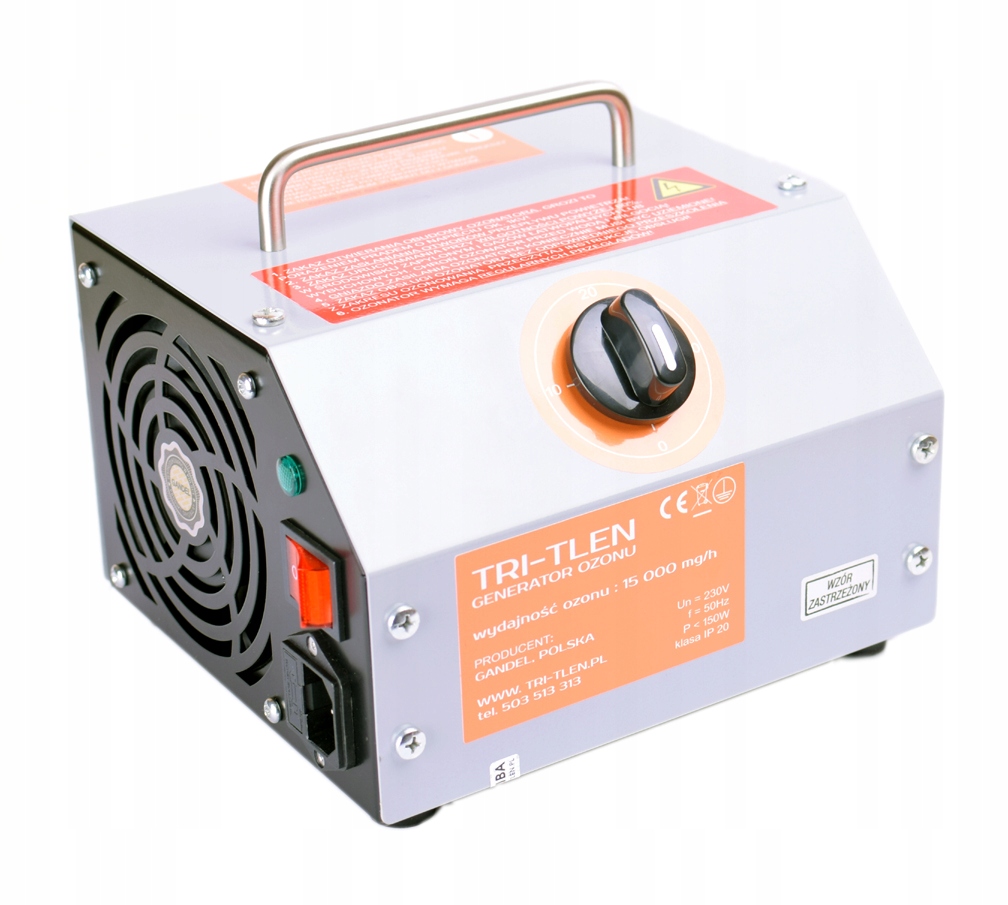 Устройство TRI-OXYGEN TR-15 представляет собой генератор озона ( озонатор) с высокой эффективностью до 15 000мг/ч. Благодаря своим небольшим размерам это очень универсальный инструмент для озонирования помещений. Оснащен таймером — мы легко можем установить время, на которое должно быть включено озонирование. Мы можем выбрать от 0 до 30 минут. Озонатор ТР-10 оповестит об окончании работы коротким звуковым сигналом.