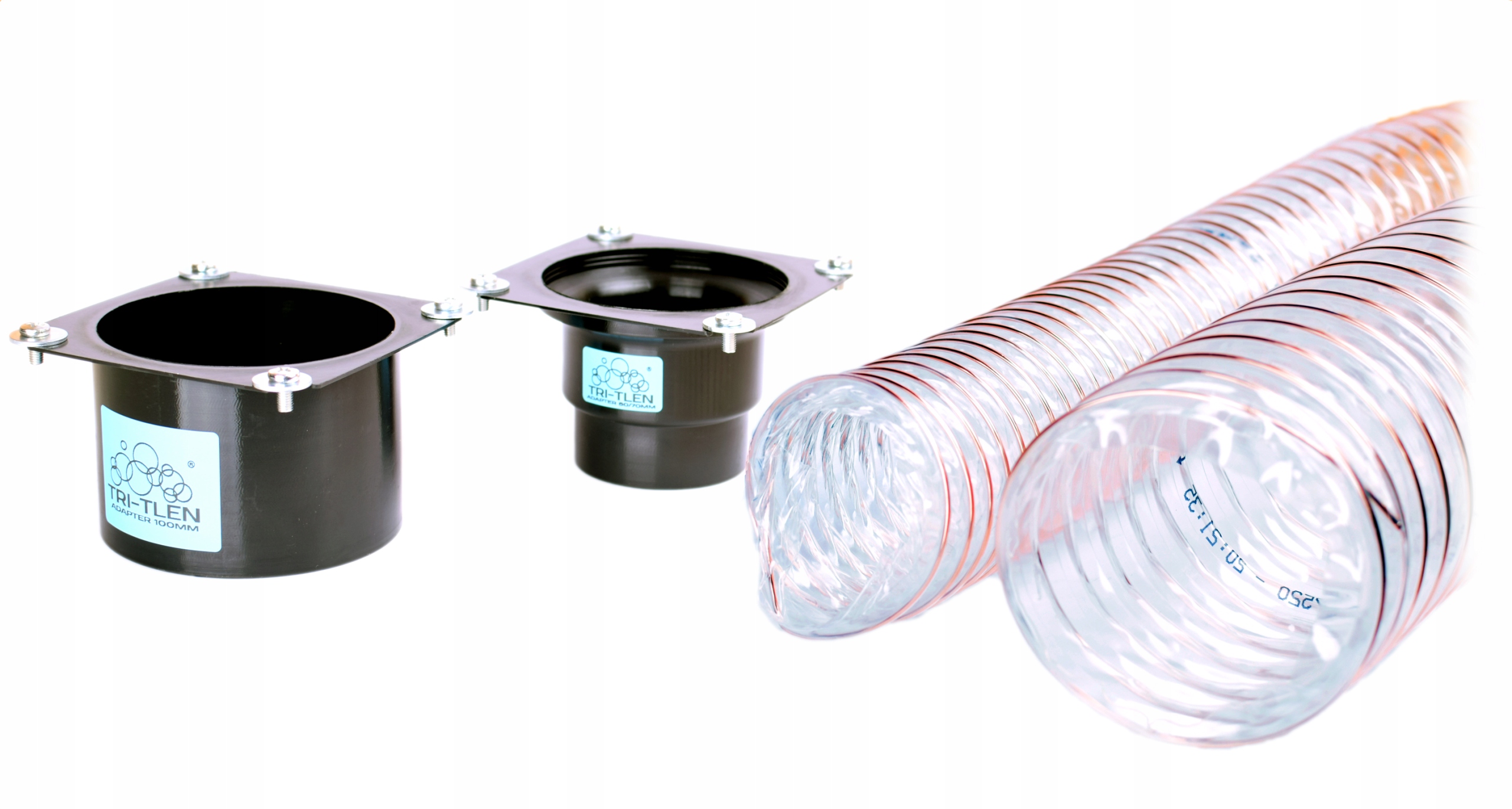 Благодаря двум ПЕРЕХОДНИКАМ 60/70ММ И 100ММ (в комплект не входят!) вы можете использовать универсальные трубы для озонирования, мы не ограничиваемся одним диаметром. Ниже представлено устройство с установленными переходниками 60/70MM и 100MM.