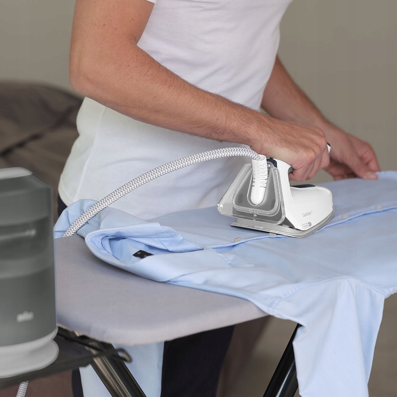 Инновационная технология iCare автоматически устанавливает безопасную температуру для каждого материала. Забудьте о сортировке одежды по типу материала или характеристикам. Глажение стало интуитивно понятным и чрезвычайно простым. Вам больше не придется ждать, пока подошва нагреется или остынет. Парогенератор Braun сэкономит ваше время и исключит риск испортить одежду.