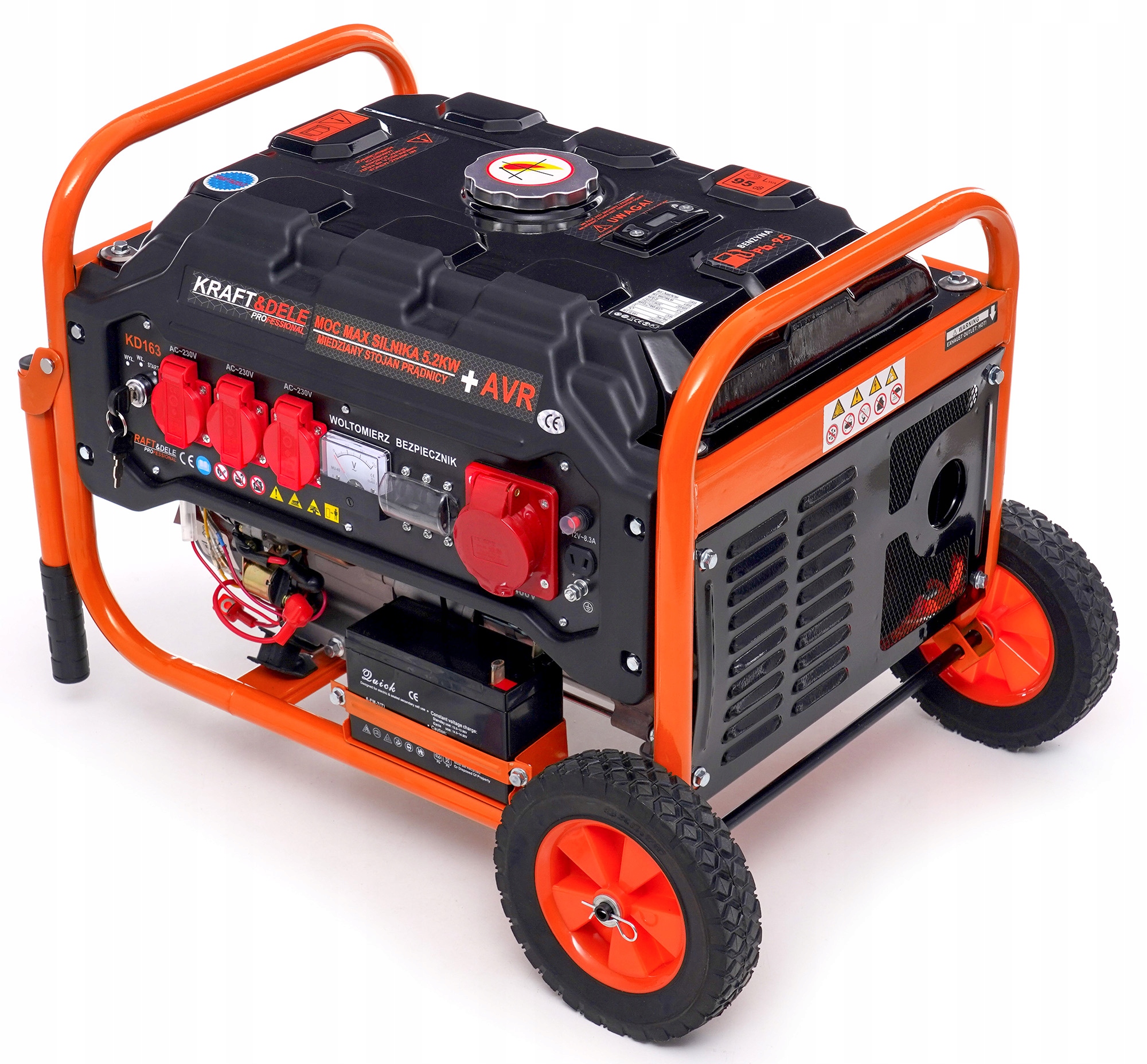 Портативный трехфазный генератор 400/230В/12В серия KRAFT&DELE Professional™ KD3144 с максимальной мощностью 3500Вт, работающий от четырехтактного бензинового двигателя, идеально подходит для строительных площадок, дома, дачи дома, кемпинги и везде, где необходим надежный и надежный источник питания. Экономичный и долговечный двигатель с хромированным поршнем отличается тихой и плавной работой, а дополнительное гашение вибраций и снижение шума обеспечивают резиновые стабилизаторы и опоры двигателя. Комфорт использования агрегата повышают резиновые колеса, облегчающие его перемещение.