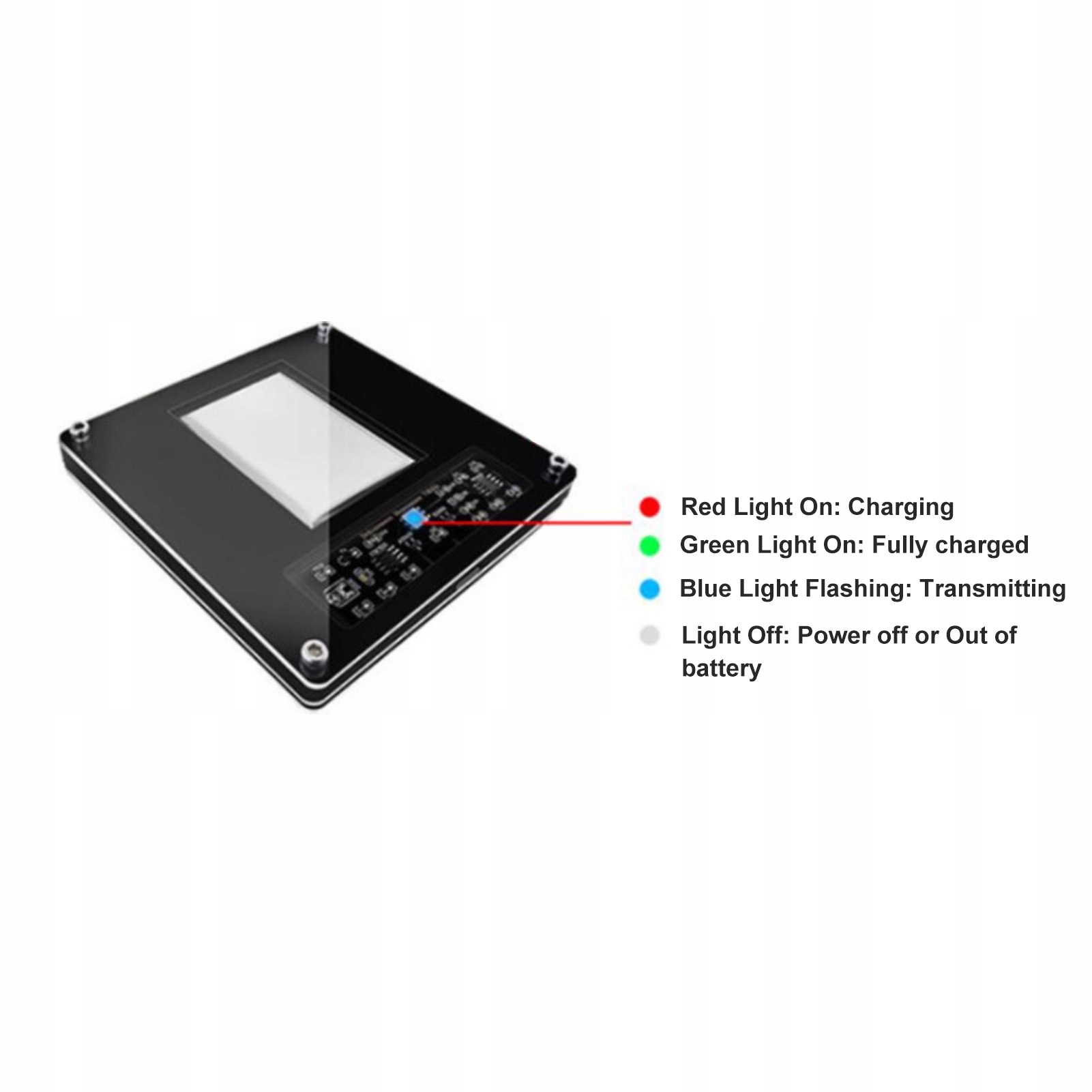 - Не горит: выключено или аккумулятор разряжен.