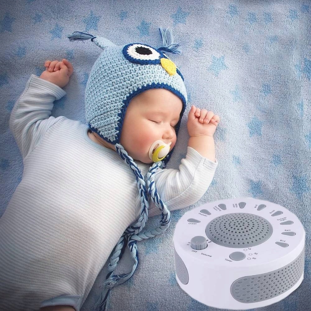 Динамика имеет 9 встроенных звуков, которые помогут нам успокоиться или заснуть! Он также имеет 8-уровневый регулятор громкости.
