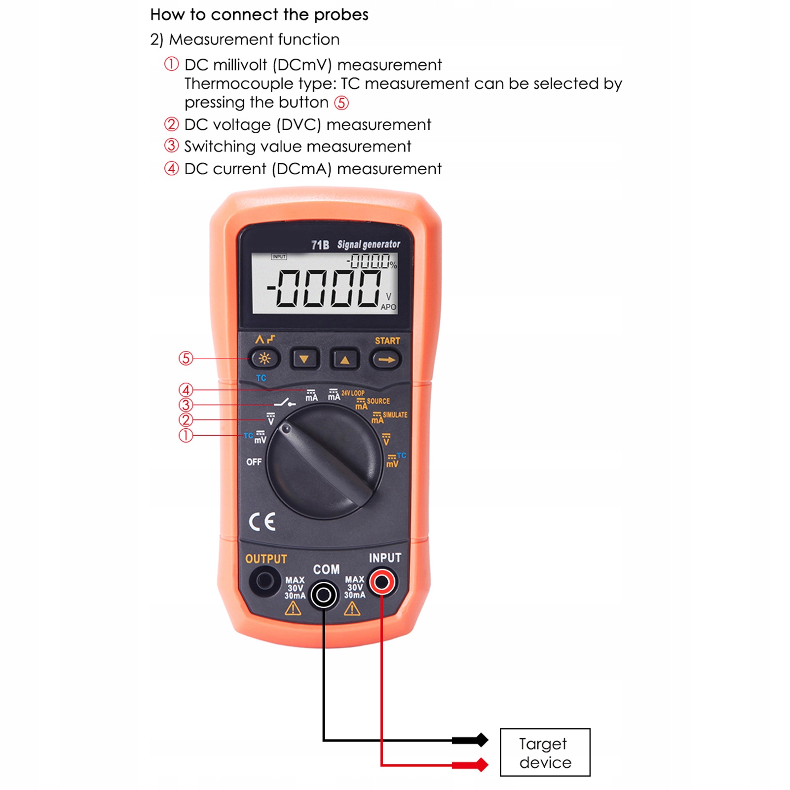3. [Многофункциональный] Ручной вывод значений V, MA, автоматический вывод сигналов и одновременное отображение значений V, MA и процентных значений. Восемь пропорциональных делений (R, S, B, K, E, J, T и N) для измерения и вывода термопары.