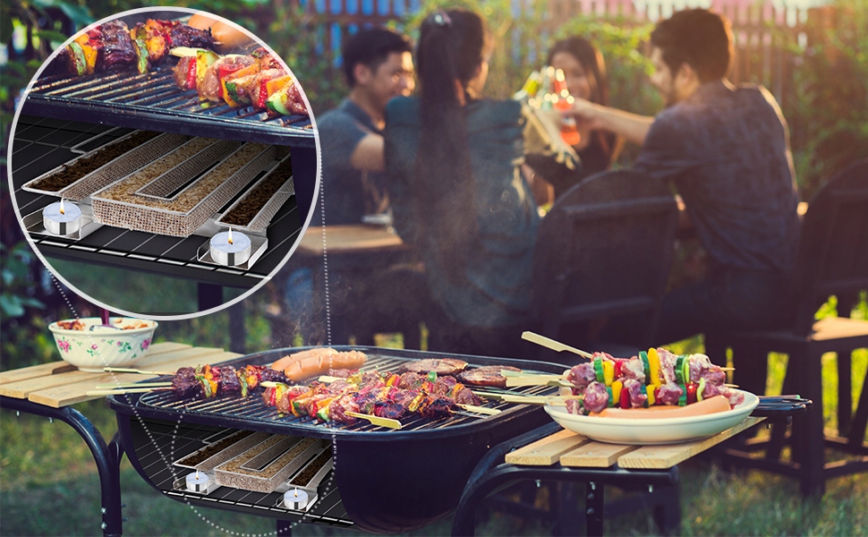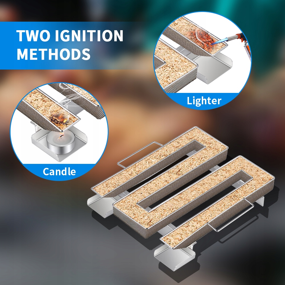 -- Зажгите обогреватель. Со временем древесная щепа воспламенится и даст конечный дым. Теперь продукты, подлежащие копчению, можно помещать на гриль. Затем закройте крышку. Спираль благовоний обеспечивает до 10 часов аварийного образования дыма и воспламенения красного дыма.