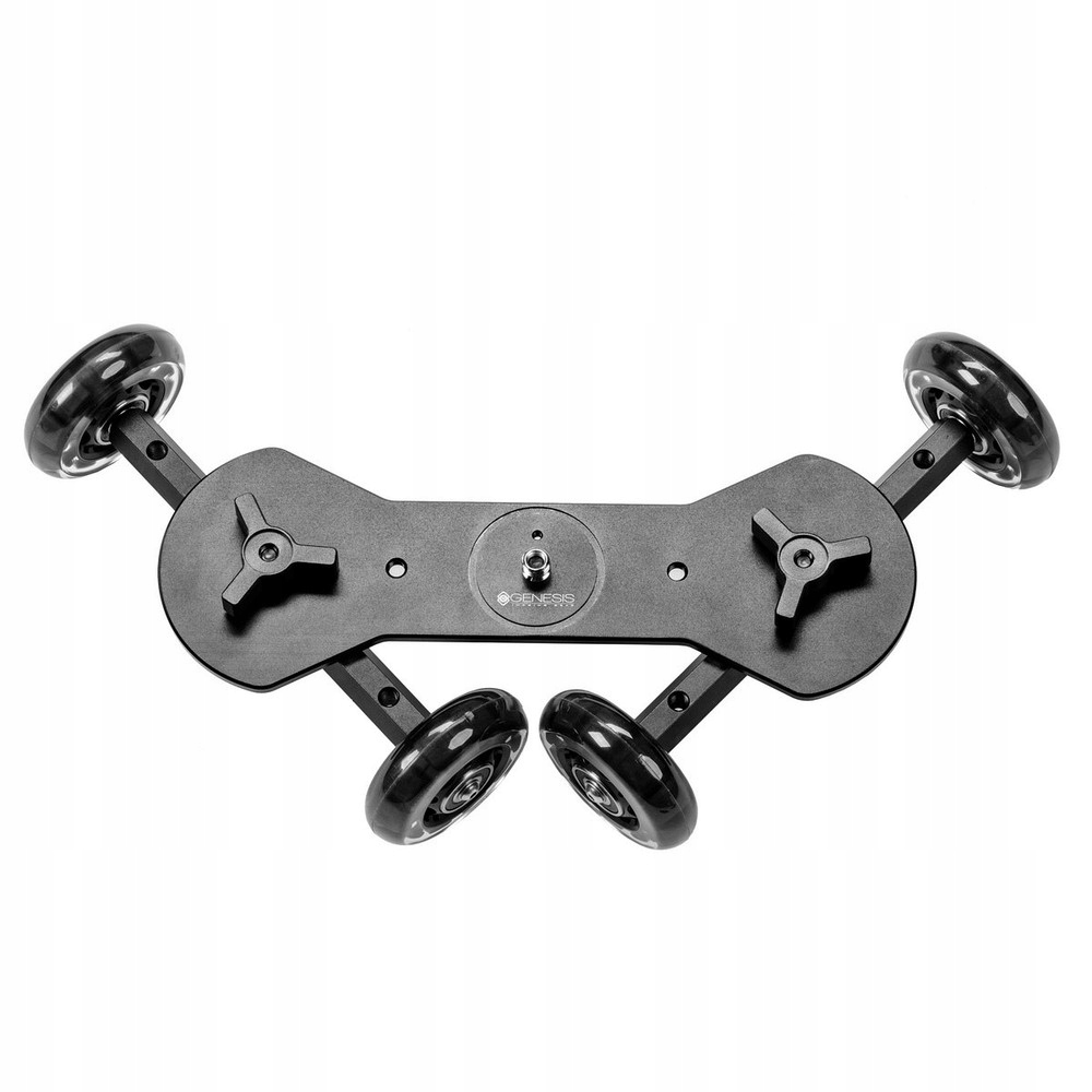 Genesis Pro Skater — компактная, но универсальная тележка для съемок. Genesis PRO Skater — это небольшая и удобная в переноске тележка, позволяющая делать динамичные снимки, сохраняя при этом плавность движения камеры. PRO Skater имеет семь точек крепления со стандартной резьбой 1/4 дюйма, что позволяет прикрепить дополнительные аксессуары, такие как микрофон или ЖК-экран.