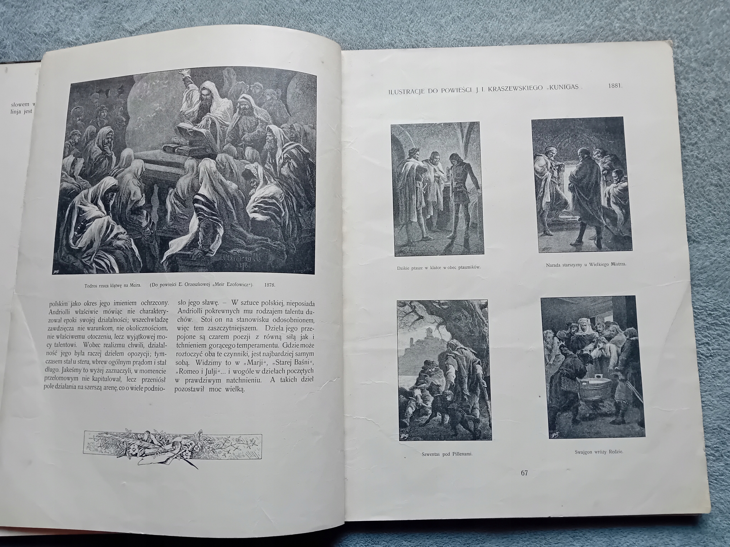 Предлагаю на продажу книгу: Андриолли в искусстве и общественной жизни. Автор: Генрих Пёнтковский. Издательство: Генрих Добжицкий, Варшава, 1904 г. Твердый переплет, переплет. 194 страницы. В тексте представлено 278 рисунков, вне текста – 25. Состояние неплохое, но обложка слегка повреждена молью, края слегка потерты. Страница со страницами 65-66 порвана и заклеена скотчем. Аналогично на странице со страницами 111-112, 115-116, 131-132, . Состояние и внешний вид ленты доказывают, что это произошло несколько десятков лет назад. На странице 93 детские каракули карандашом, к счастью мелкие и не закрывающие текст. На полях страницы 175 — карандашный рисунок монаха. Некоторые страницы потемнели, вероятно, из-за влаги. На фотографиях показано реальное состояние.