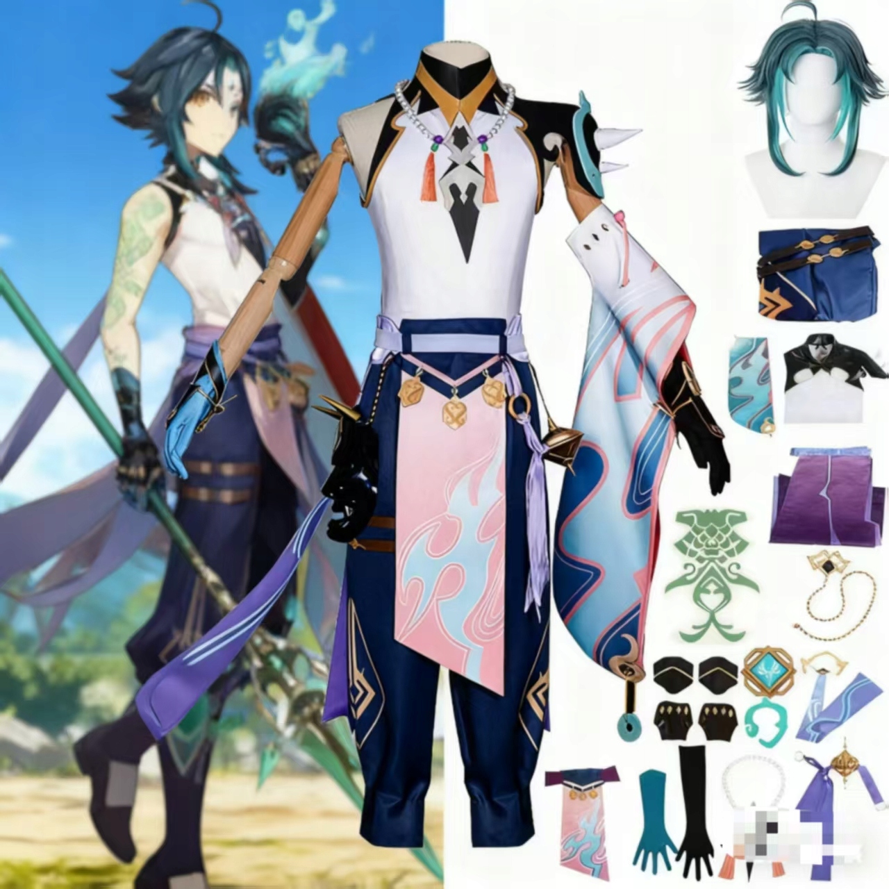 Genshin Impact Xiao Косплей Костюм ХЭЛЛОУИН РОЖДЕСТВЕНСКИЙ ПОДАРОК + парик