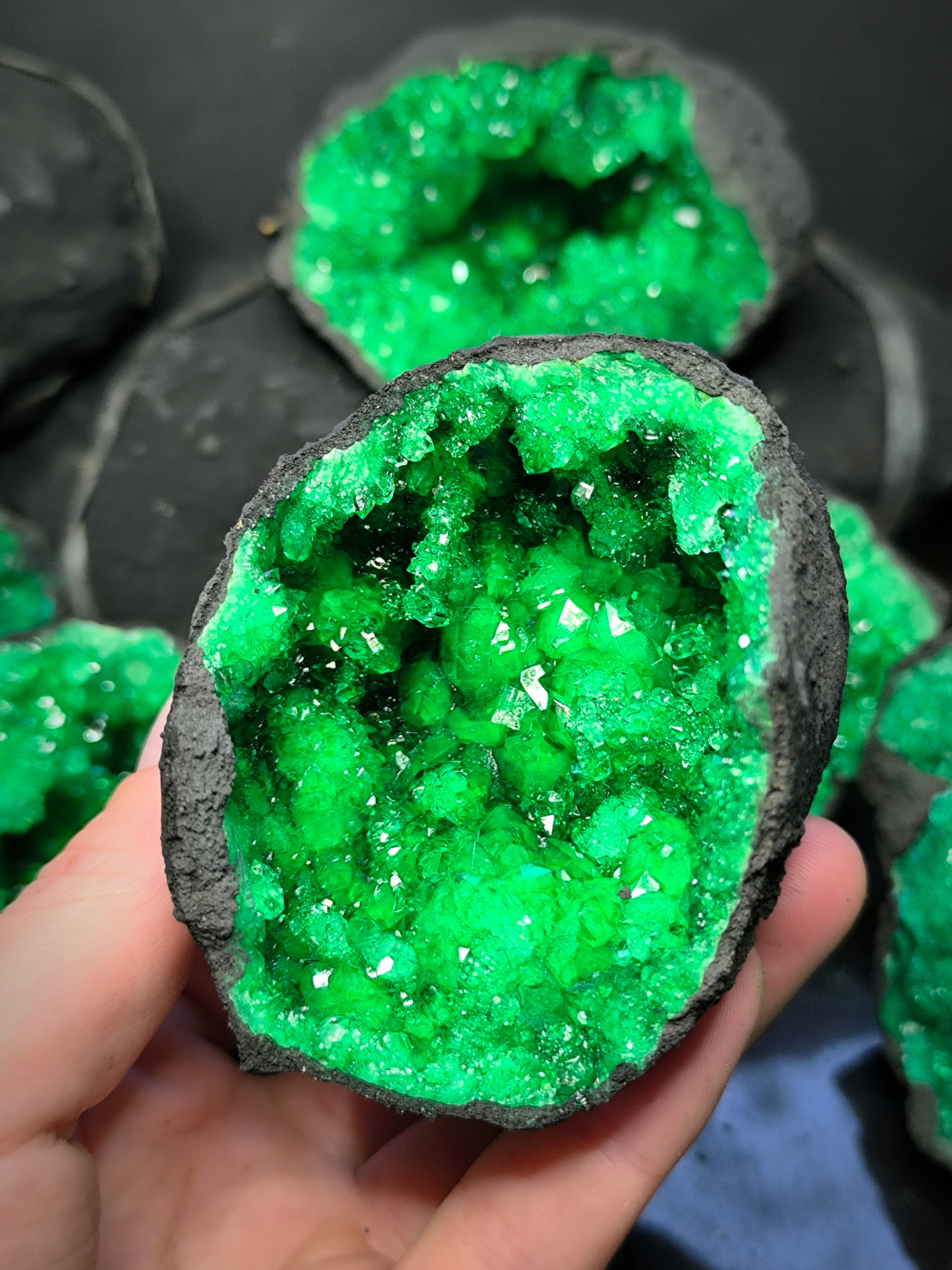 Geoda kwarcowa zielona, kryształy Maroko 1 połowa