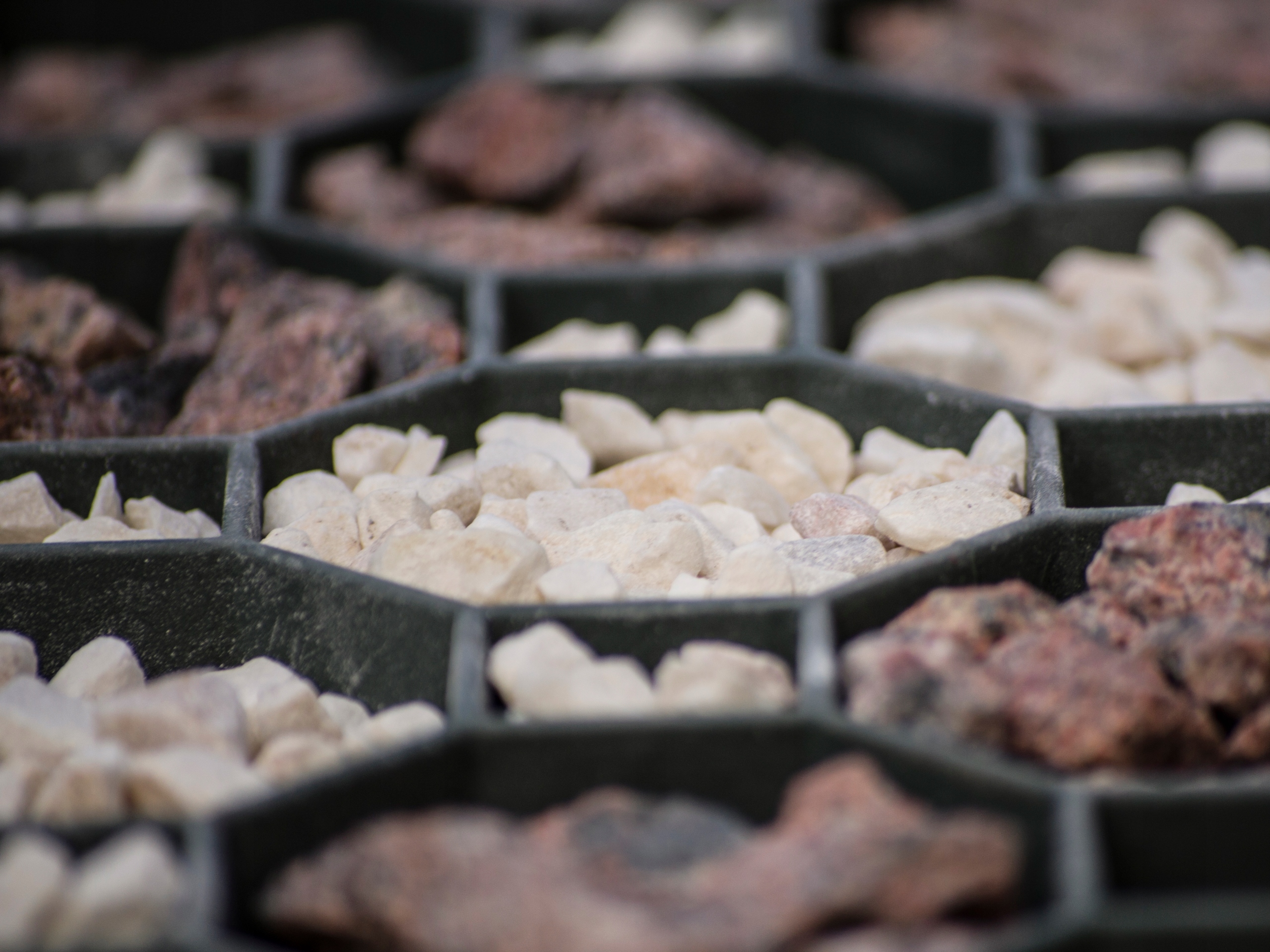Сетка заполняется любым декоративным или натуральным заполнителем максимальным диаметром 20 мм, что обеспечит комфорт использования. После заполнения сетчатой конструкции заполнитель следует механически уплотнить до уровня поверхности сетки, заполняя всю сетчатую конструкцию.