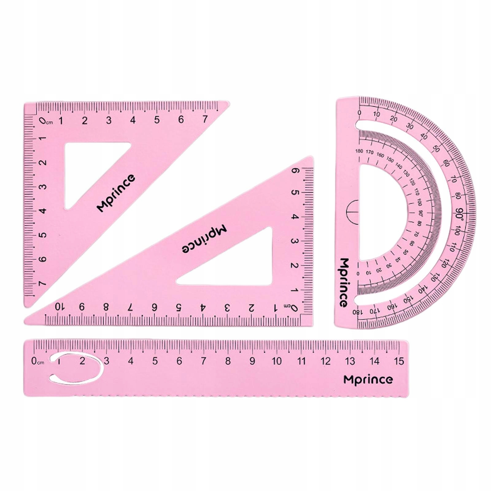 В КОМПЛЕКТ ВХОДЯТ: 1 прямая линейка, 2 треугольные линейки, 1 транспортир.