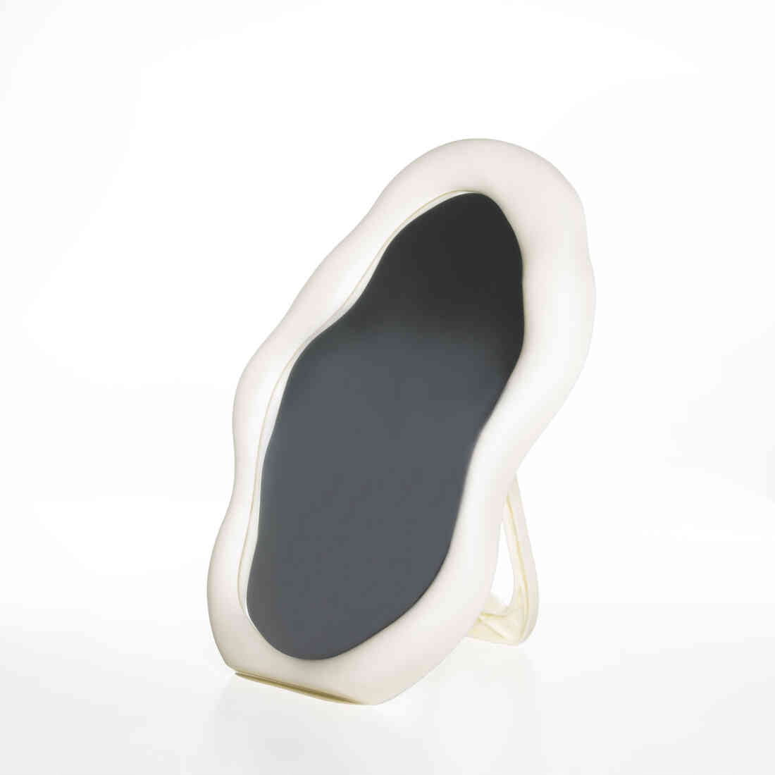 Косметическое зеркало с опорой уникальной формы, идеально подходящее для туалетного столика или в качестве украшения в спальне.