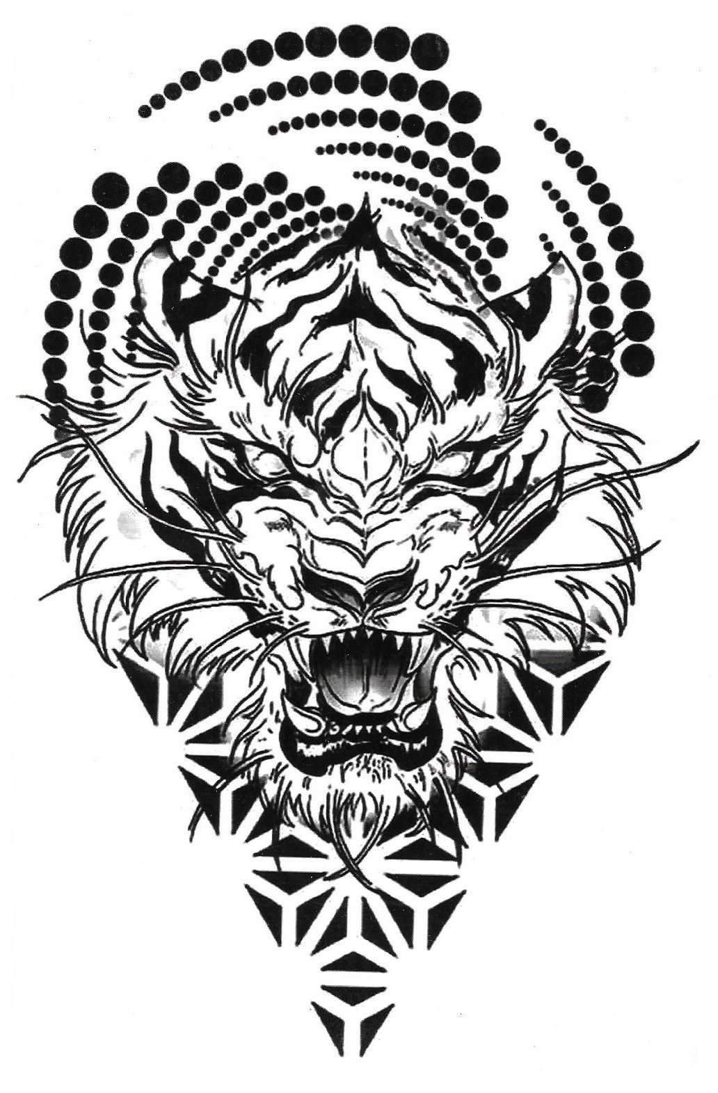 Временная татуировка геометрический опасный тигр