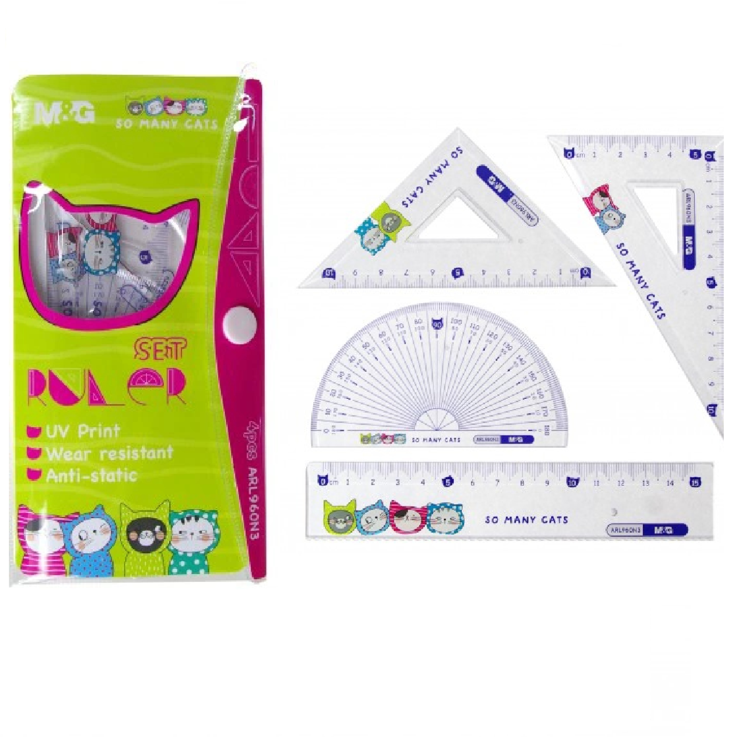 НАБОР ГЕОМЕТРИЧЕСКИХ ПРИНАДЛЕЖНОСТЕЙ MG SO MANY CATS, 4 ЭЛЕМЕНТА
