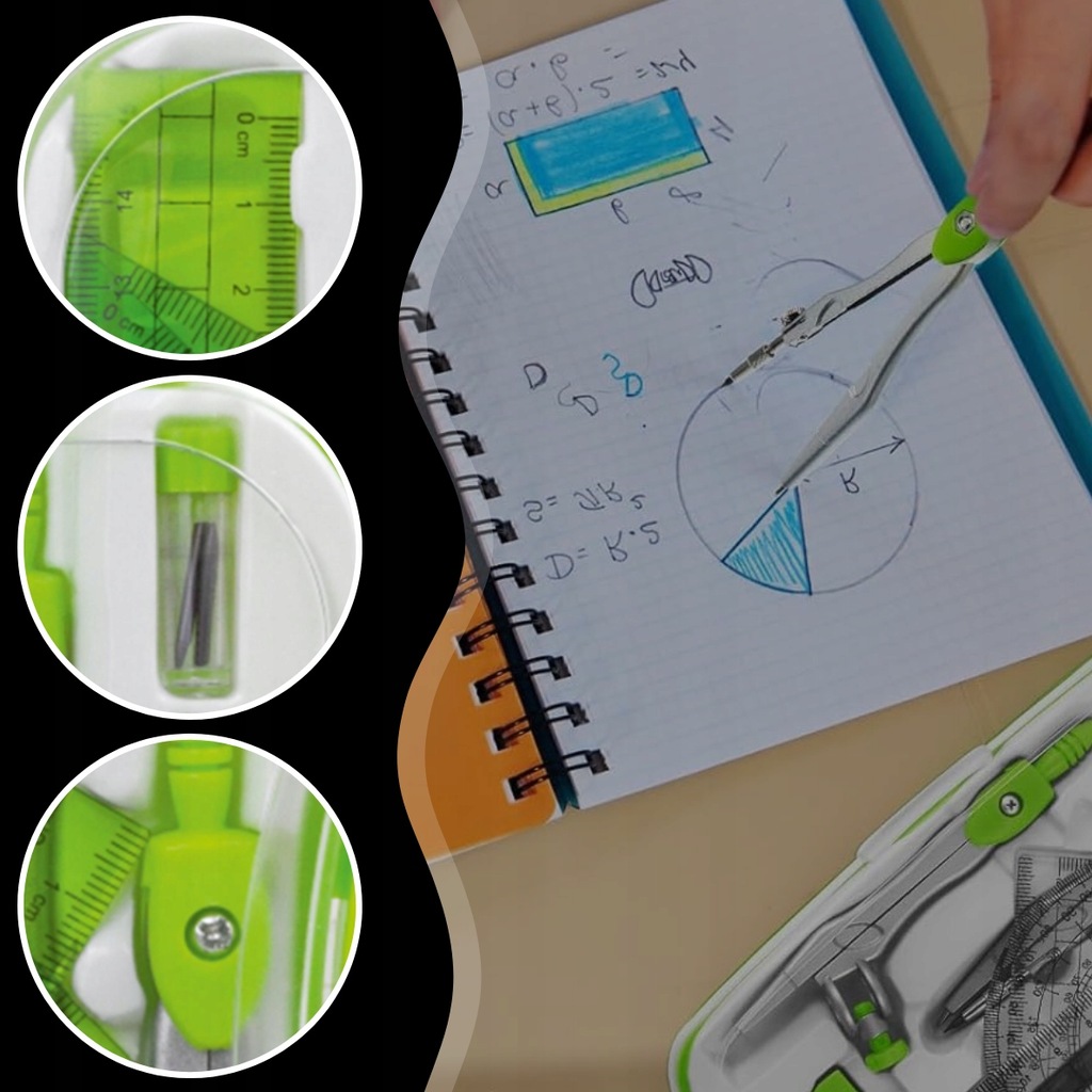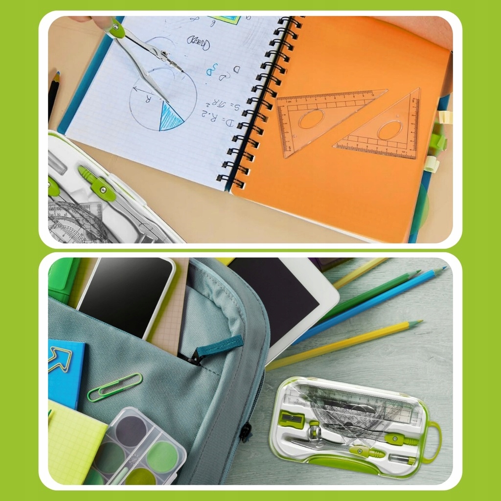 Практический и универсальный Геометрический набор является обязательным для каждого ученика. отлично будет работать в математике, геометрии, физике, , а также во время подготовки к экзаменам или дизайнерской работе. Набор включает в себя до 10 функциональных закрытых элементов в удобном случае - готово к школе или использованию дома.