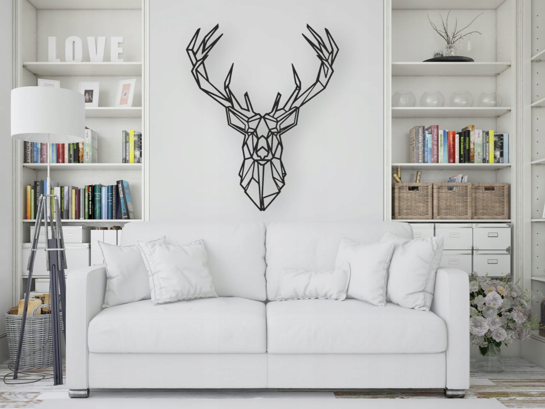 Ажурная картина, геометрический декор стены ОЛЕНЬ 3D, стандартный вариант.