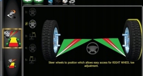 Поверните передние колеса и получайте доступ к сложным точкам регулировки, все еще отображая центральные показания пальцев