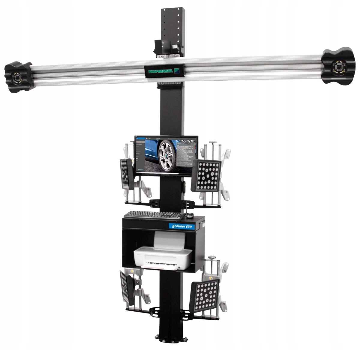 Прибор для измерения геометрии Hofmann с программным обеспечением 630, измерения в 3D-технологии. Предназначен для шиноремонтных предприятий и небольших мастерских. Geometry оснащена 22-дюймовым TFT ЖК-монитором, принтером и подвесками для мишеней, закрепленными на опоре. Мишени крепятся к колесу с помощью креплений AC100 в диапазоне диаметров обода 13-22".