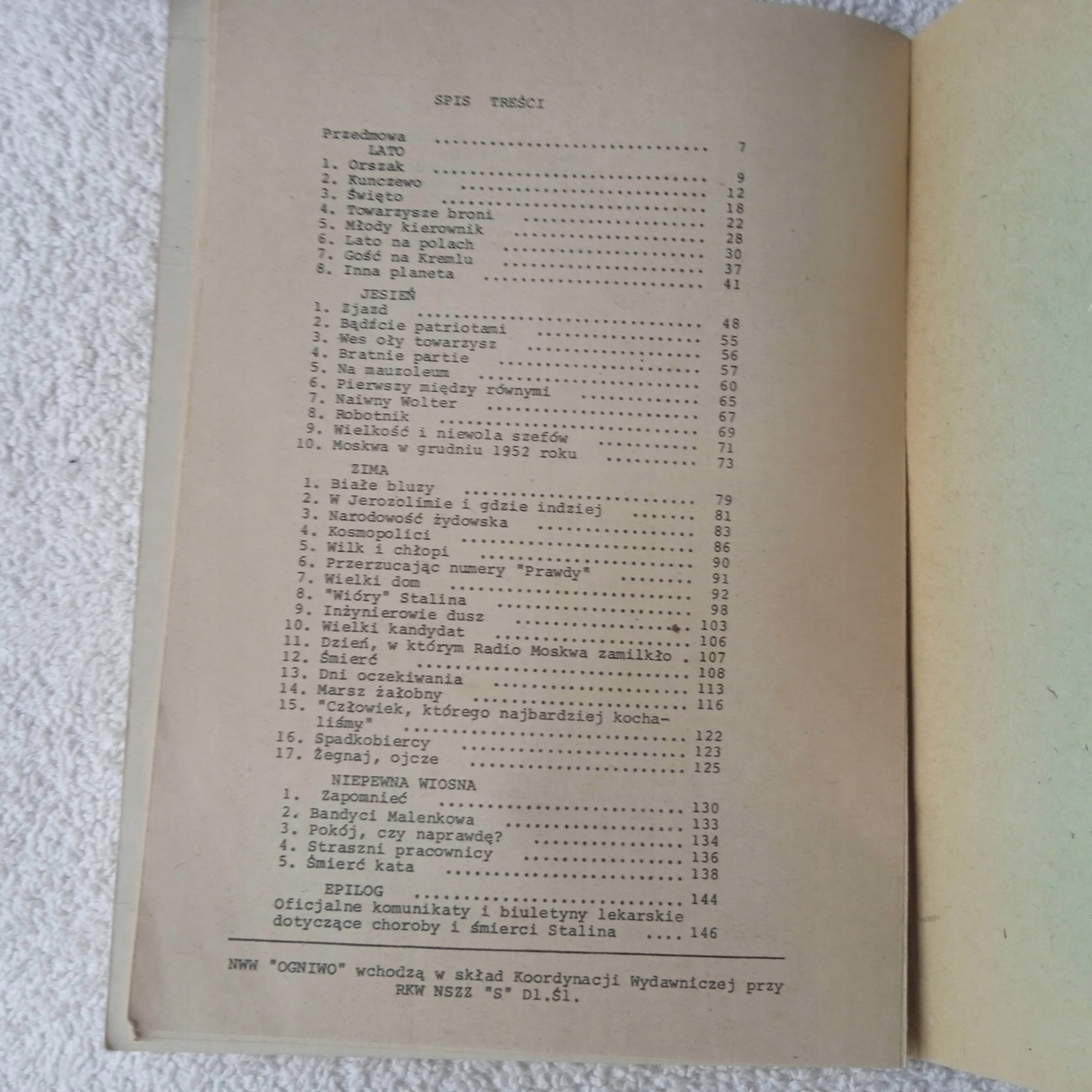Продам книгу: Смерть Сталина. Автор: Жорж Бартолли. Издательство: NWW Ogniwo - Вроцлав, 1989 г., польское издание I. Перепечатано из: Editions Robert Laffont, S.A. 1973. Подпольное издание оппозиции «Солидарность», мягкая обложка, 152 страницы. Тираж ограничен по понятным причинам. Состояние вполне хорошее. Обложка пыльная, слегка потертая. Края страниц запылились, слегка погнуты углы обложки и некоторые страницы. Книжный блок относительно компактен, но начинает разваливаться внизу.